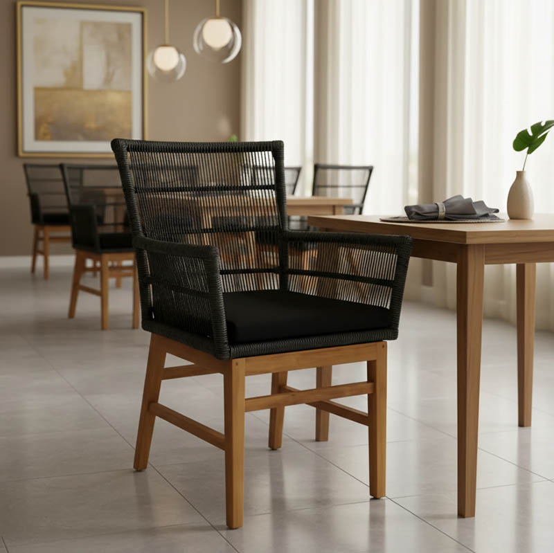 Πολυθρόνα Elaiza teak ξύλο και συνθετικό σχοινί σε φυσική-μαύρη απόχρωση με μαξιλάρι 58x60x90εκ