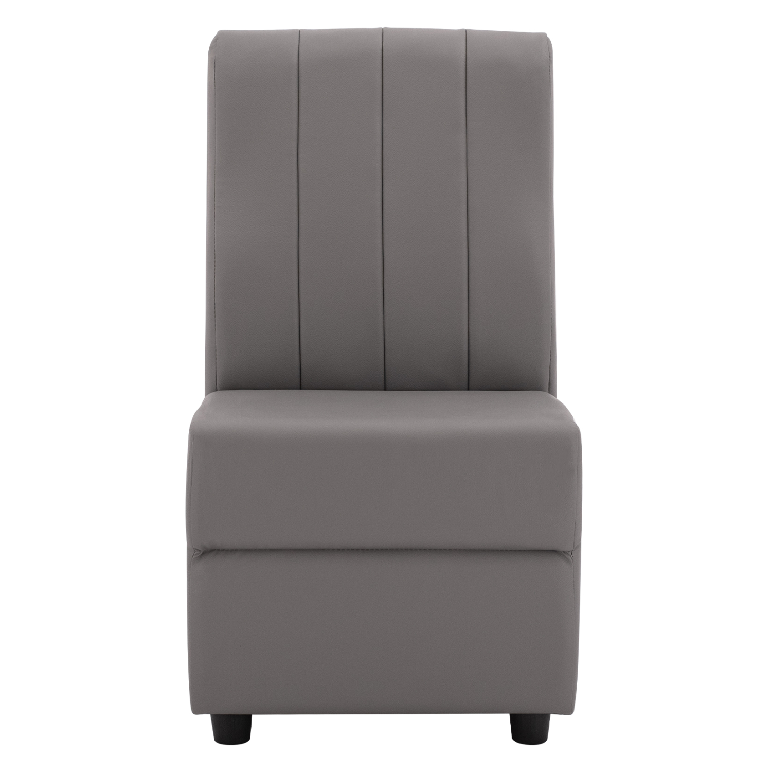 Η πολυθρόνα ΗΜ3162.10 είναι μια μοντέρνα πολυθρόνα σε ΑΝΟΙΧΤΟ ΓΚΡΙ χρώμα με ιδιαιτέρως λιτή «γραμμή». Αποτελείται από μια ψηλή πλάτη με κατακόρυφες ραφές, και ένα κάθισμα που μοιάζει περισσότερο με ένα πλούσιο σκαμπό. Το ξεχωριστό χαρακτηριστικό της είναι ότι δεν διαθέτει μπράτσα, ενώ τα πόδια της πολυθρόνας είναι χαμηλά και στιβαρά, επιτείνοντας τον ιδιαίτερο χαρακτήρα της.