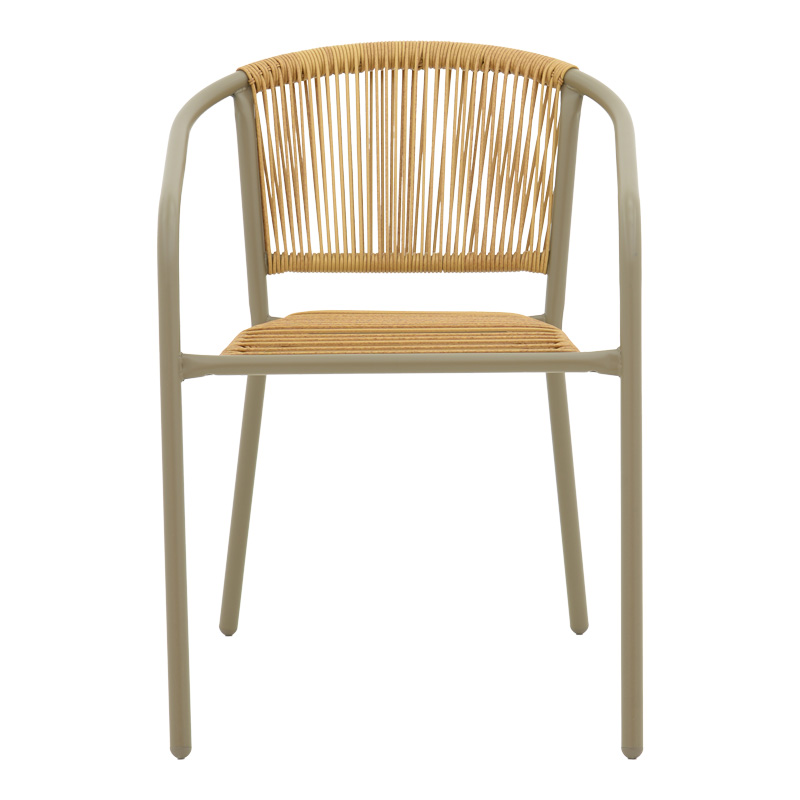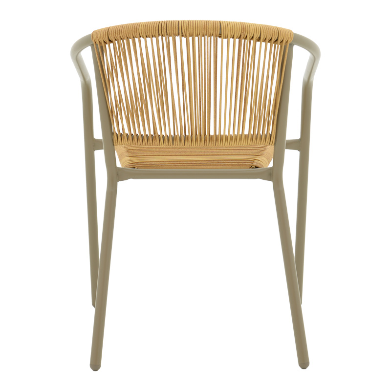 Πολυθρόνα Lindaria στοιβαζόμενη μέταλλο σε σαμπανιζέ και pe rattan σε φυσική απόχρωση 54x63x74εκ