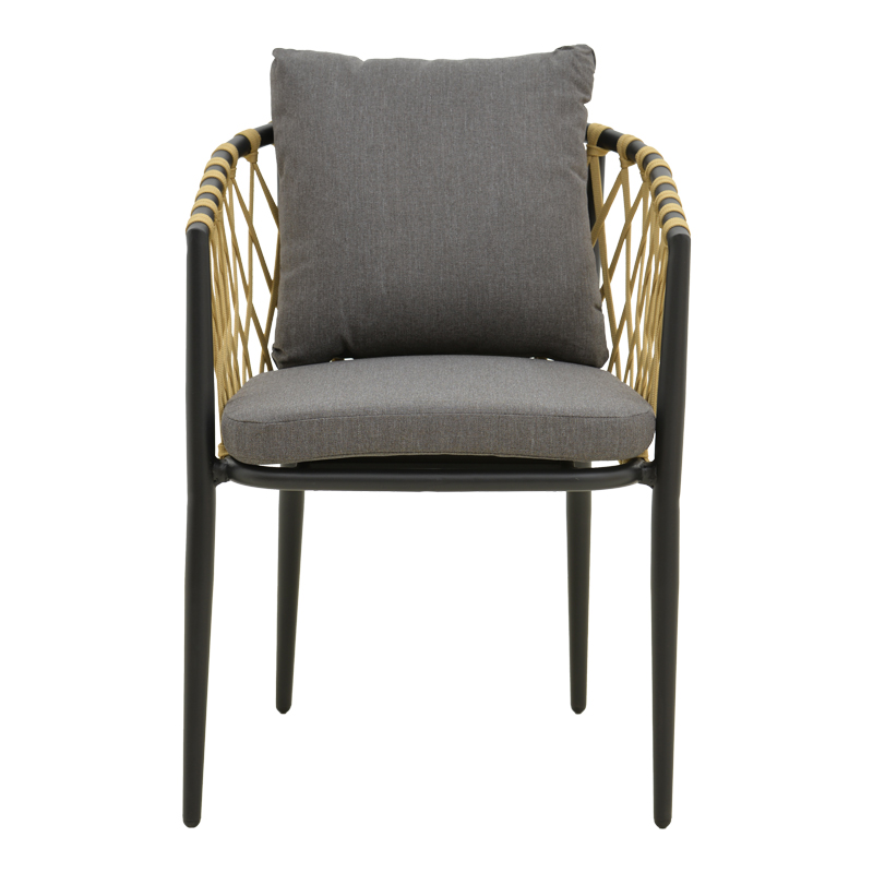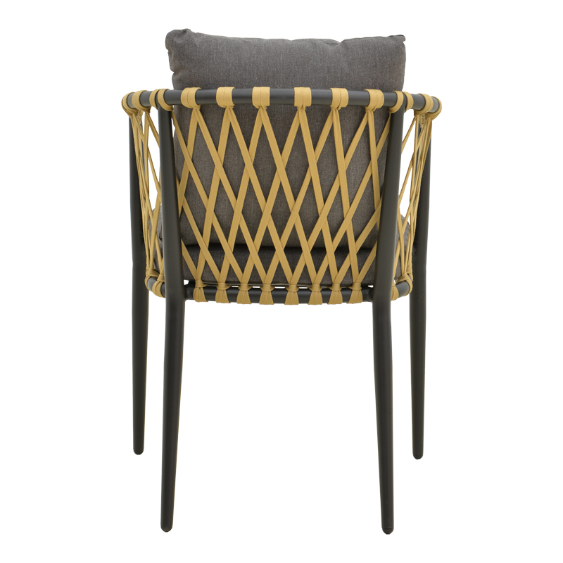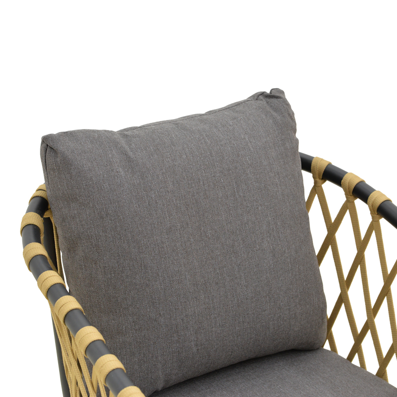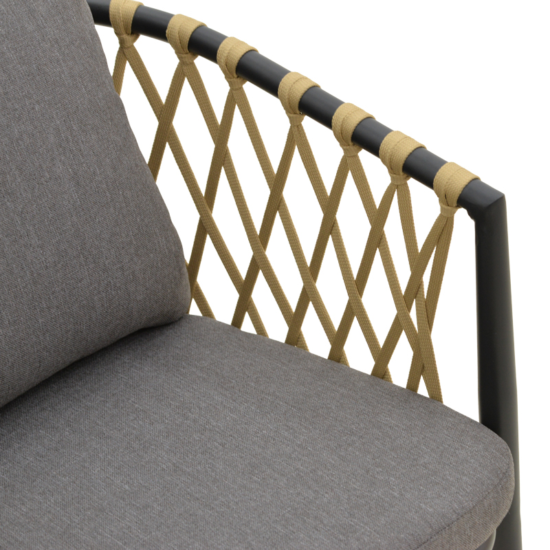 Πολυθρόνα Peluxe αλουμίνιο ανθρακί-pe σχοινί φυσικό-μαξιλάρια γκρι 54x62x84εκ