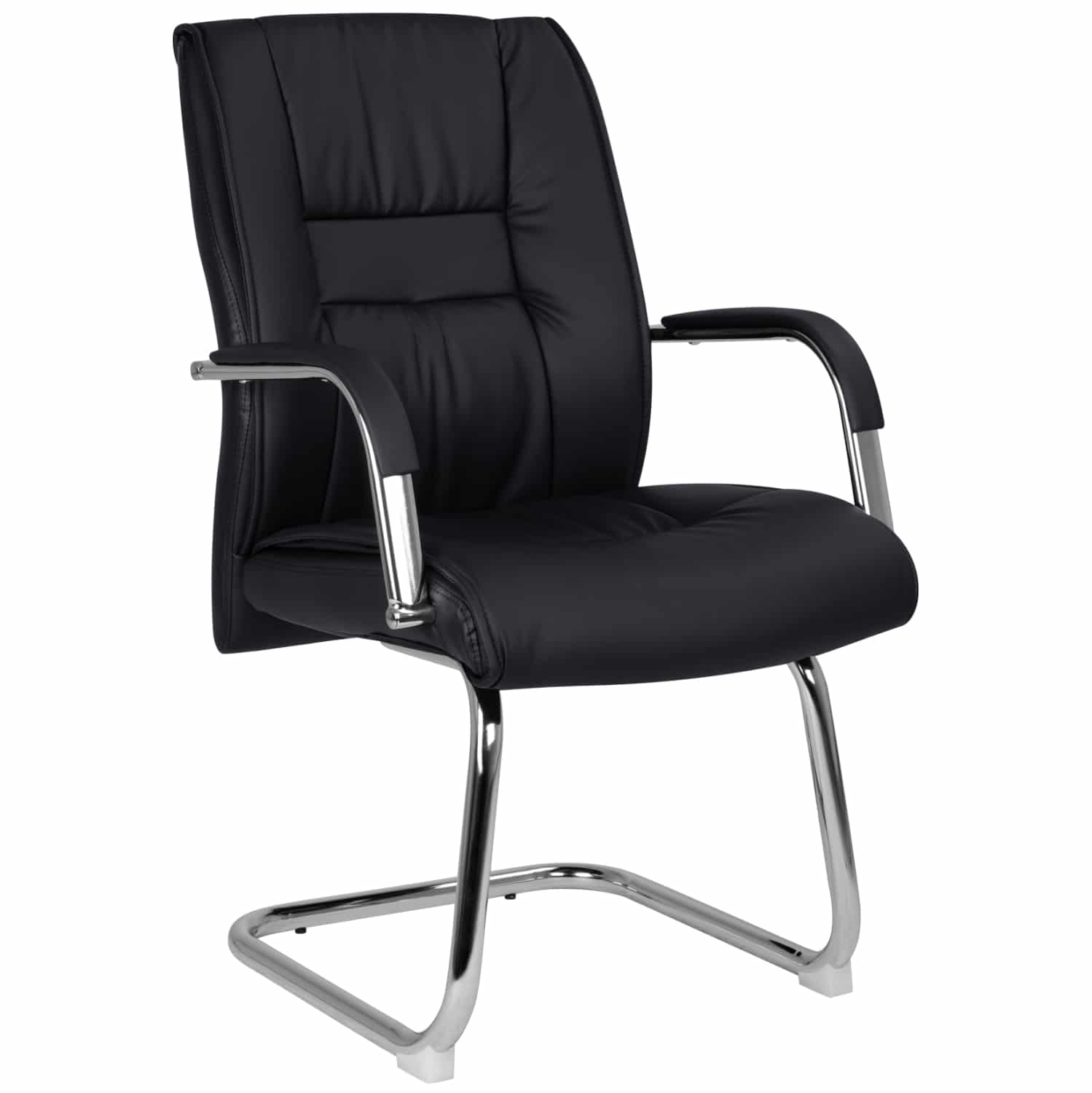Καρέκλα συνεργασίας με μπράτσα, από υψηλής ποιότητας PU σε μαύρη απόχρωση και χρωμιωμένο σκελετό.