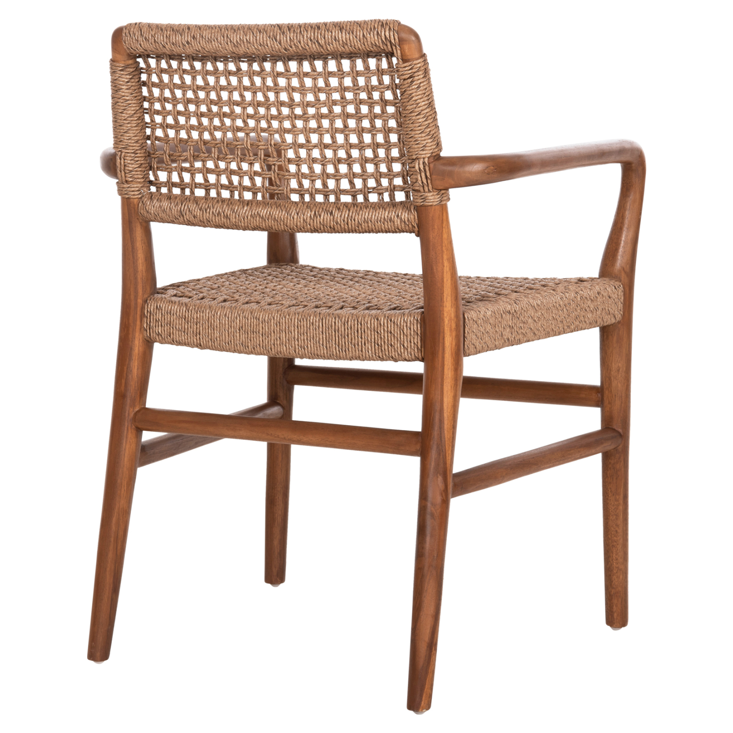 Η πολυθρόνα ROSCO, τόσο για επαγγελματική χρήση όσο και για το σπίτι, είναι υψηλής ποιότητας. Ο πανέμορφος σκελετός της είναι από ποιοτικό ξύλο σε ΚΑΡΥΔΙ χρώμα, ενώ τόσο η μεσαίου ύψους πλάτη όσο και το φαρδύ κάθισμα αποτελούνται από αριστοτεχνικά πλεγμένο VIRO σχοινί. Οι σχεδιαστικές γραμμές της πολυθρόνας είναι κομψές με χαρακτηριστικό γνώρισμα τις στρογγυλεμένες γωνίες στα μπράτσα. Η πολυθρόνα θα συμπληρώσει ιδανικά ένα τραπέζι ανάλογης ποιότητας και αισθητικής.