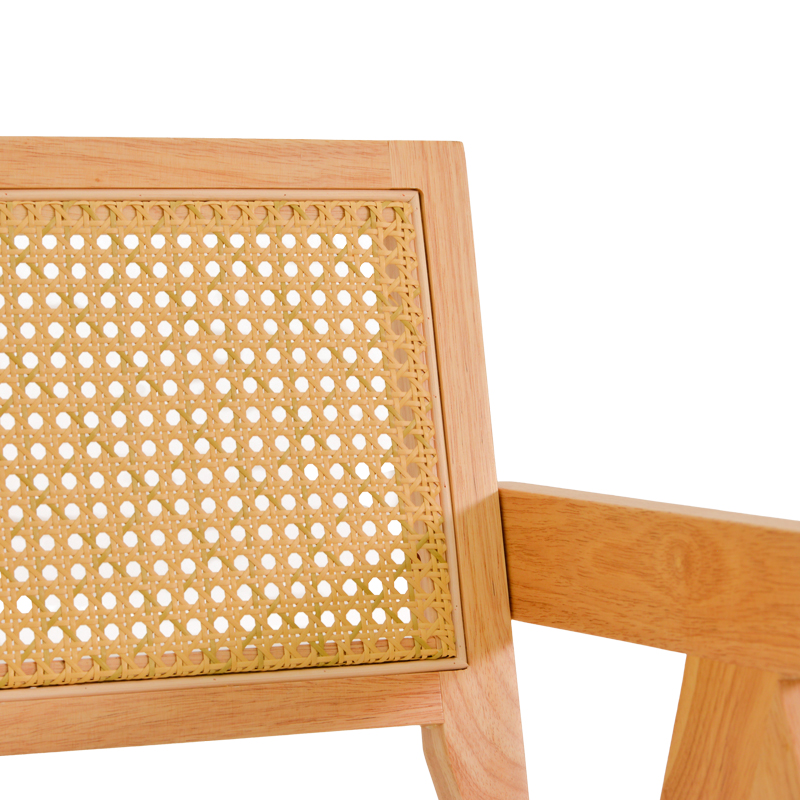 - Πλάτη από ανθεκτικό διάτρητο pvc rattan σε φυσικό χρώμα.