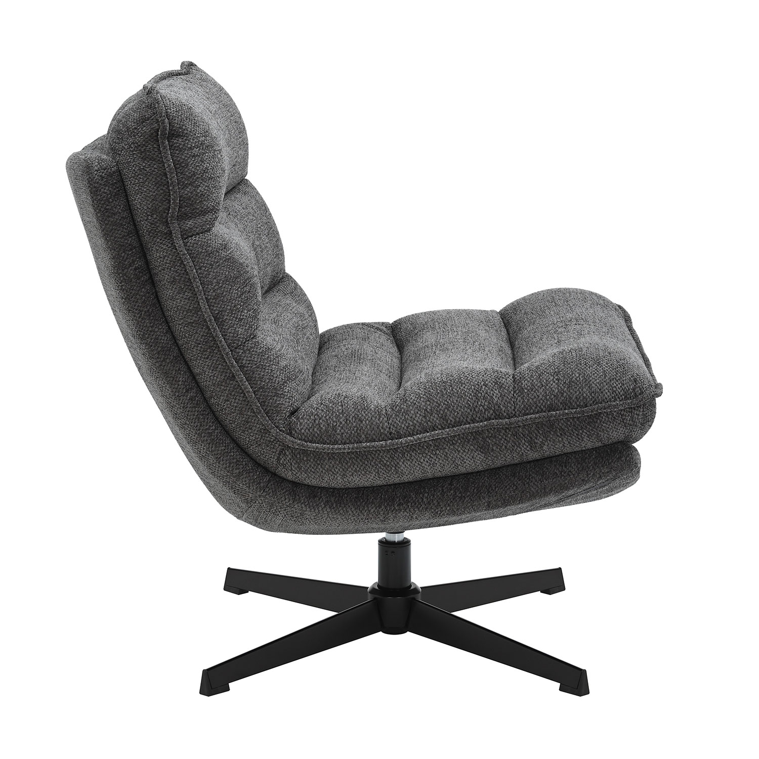 Περιστρεφόμενη πολυθρόνα επενδεδυμένη με ύφασμα και μεταλλικό σκελετό.