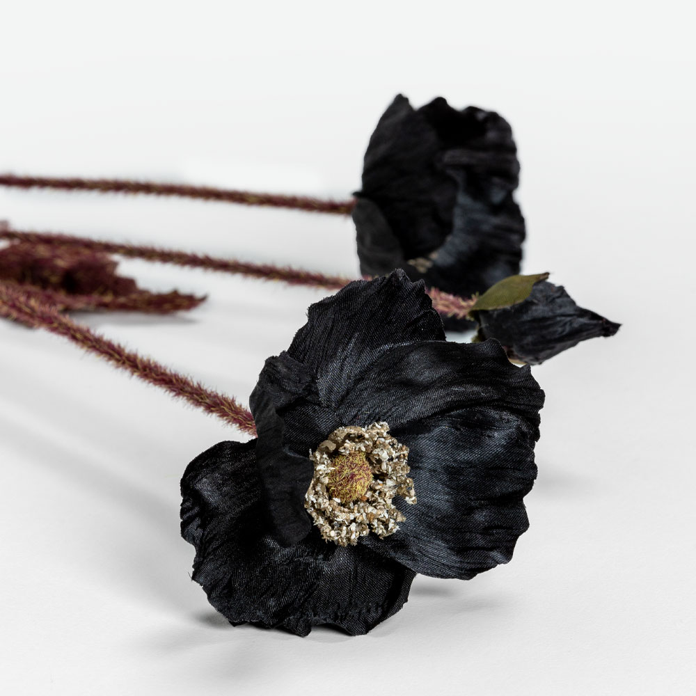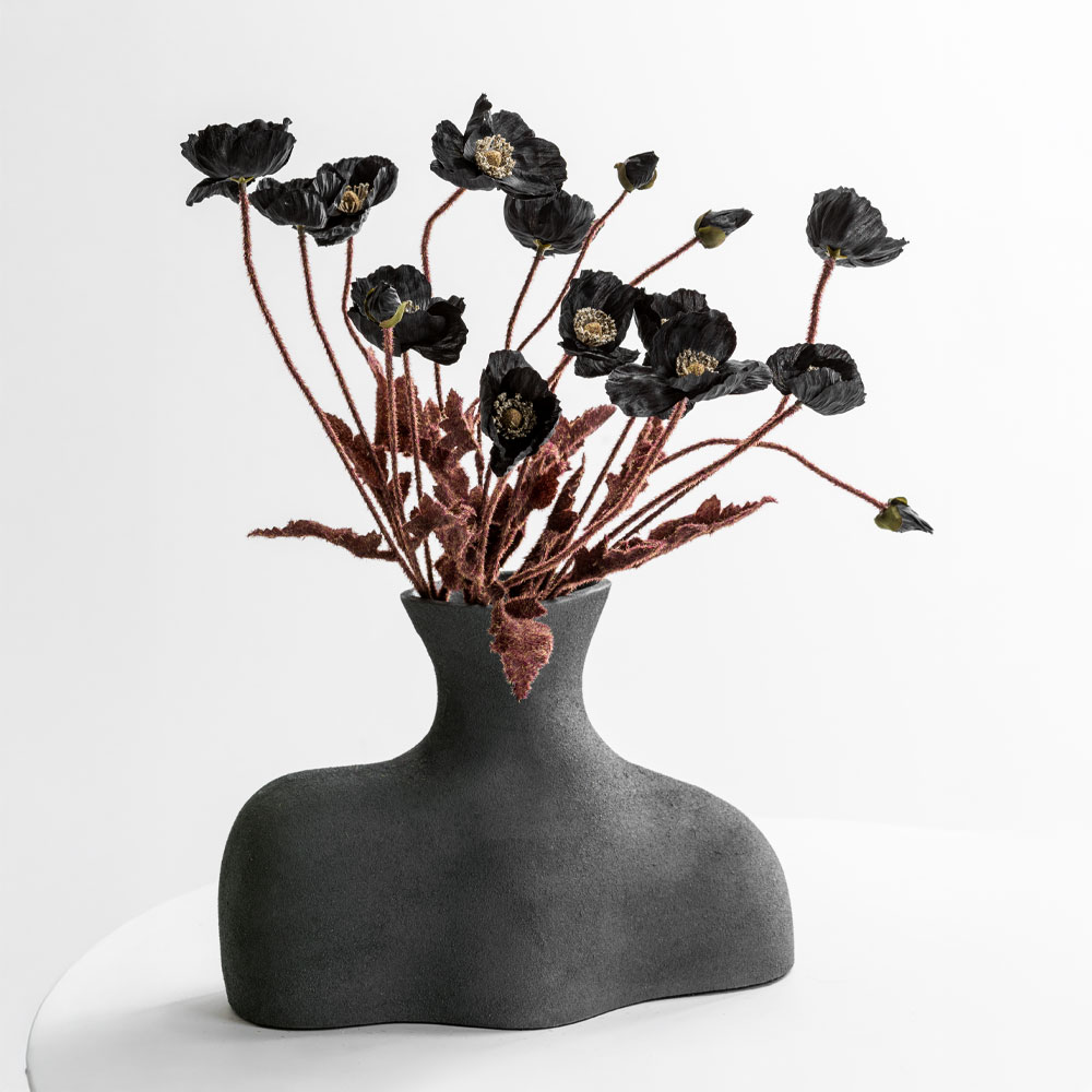 Το μαύρο τεχνητό λουλούδι POPPY 60cm αποτελεί μια τολμηρή και εντυπωσιακή επιλογή που θα δώσει χαρακτήρα και δυναμισμό σε κάθε χώρο. Ιδανικό για μίνιμαλ, industrial ή και πιο εκλεκτικές διακοσμήσεις, συνδυάζεται άψογα με μεταλλικά στοιχεία, σκούρα ξύλα αλλά και φυσικά κλαδιά για έντονη αντίθεση. Η υφή του πολυεστέρα προσδίδει ρεαλιστική όψη στα πέταλα, δημιουργώντας ένα μοναδικό εφέ βάθους και κομψότητας. Μια επιλογή που ξεφεύγει από τα συνηθισμένα και τραβάει τα βλέμματα σε κάθε σύνθεση – είτε σε οικιακό είτε σε επαγγελματικό περιβάλλον.