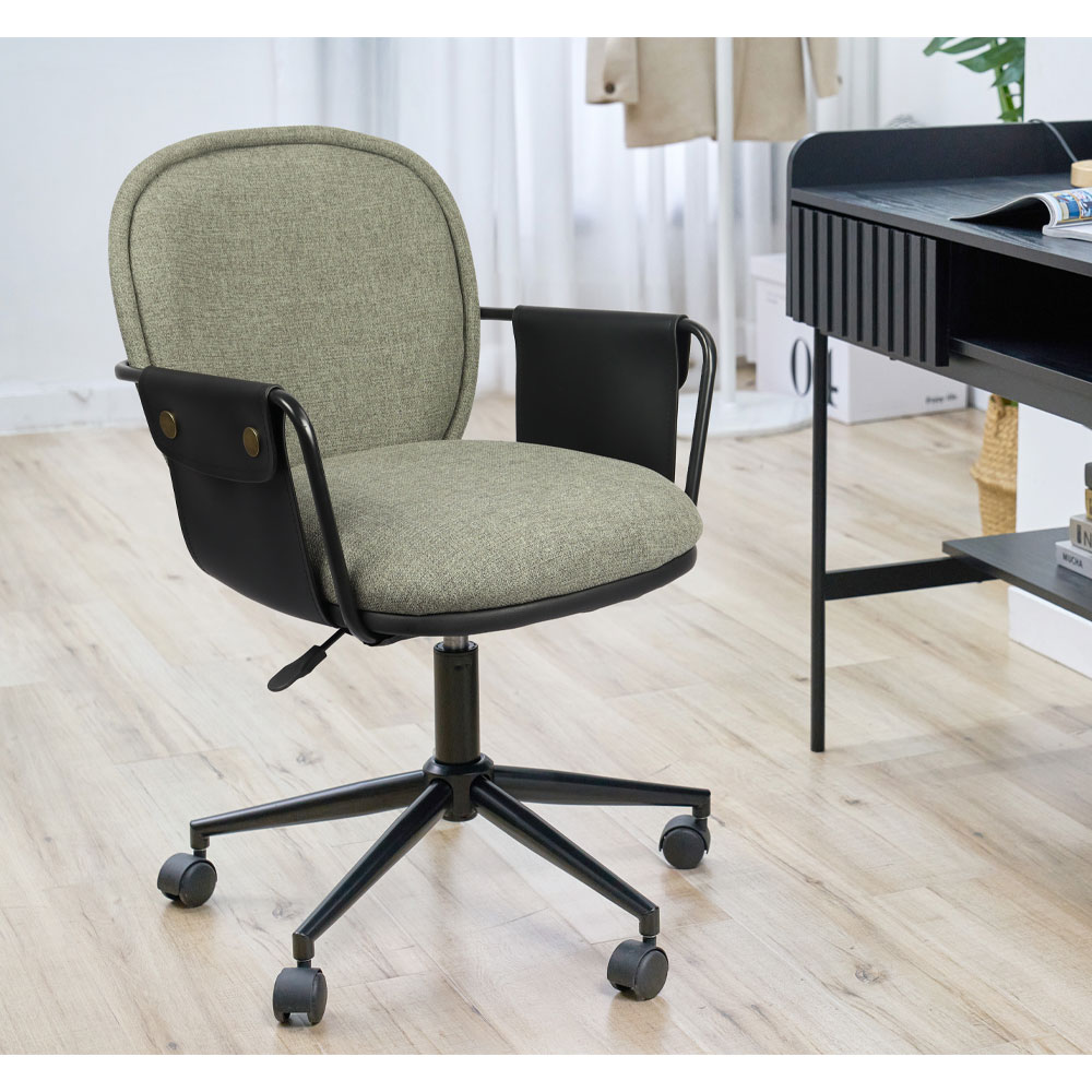 Η καρέκλα γραφείου Post συνδυάζει κομψότητα, άνεση και λειτουργικότητα, καθιστώντας την ιδανική επιλογή για έναν σύγχρονο χώρο εργασίας. Το κάθισμα και η πλάτη είναι επενδυμένα με ύφασμα σε λαδί απόχρωση, χαρίζοντας μια ζεστή και φιλόξενη αίσθηση. Τα μπράτσα είναι επενδυμένα με μαύρη δερματίνη, προσδίδοντας μια διακριτική αίσθηση πολυτέλειας και μοντέρνας αισθητικής.Η μεταλλική βάση σε μαύρη απόχρωση εξασφαλίζει σταθερότητα και αντοχή, ενώ το σύνολο αναδεικνύει μια διαχρονική αλλά και μοντέρνα αισθητική.Η Post αποτελεί την τέλεια επιλογή για όσους αναζητούν μια καρέκλα γραφείου που συνδυάζει στυλ και πρακτικότητα.