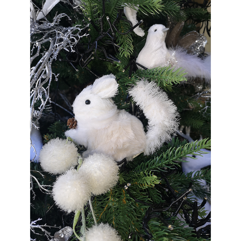 POWDER SQUIRREL ΧΡΙΣΤΟΥΓΕΝΝΙΑΤΙΚΟ ΣΤΟΛΙΔΙ ΣΚΙΟΥΡΟΣ 15x8x13cm POLYFOAM ΛΕΥΚΟ ΥΦΑΣΜΑ