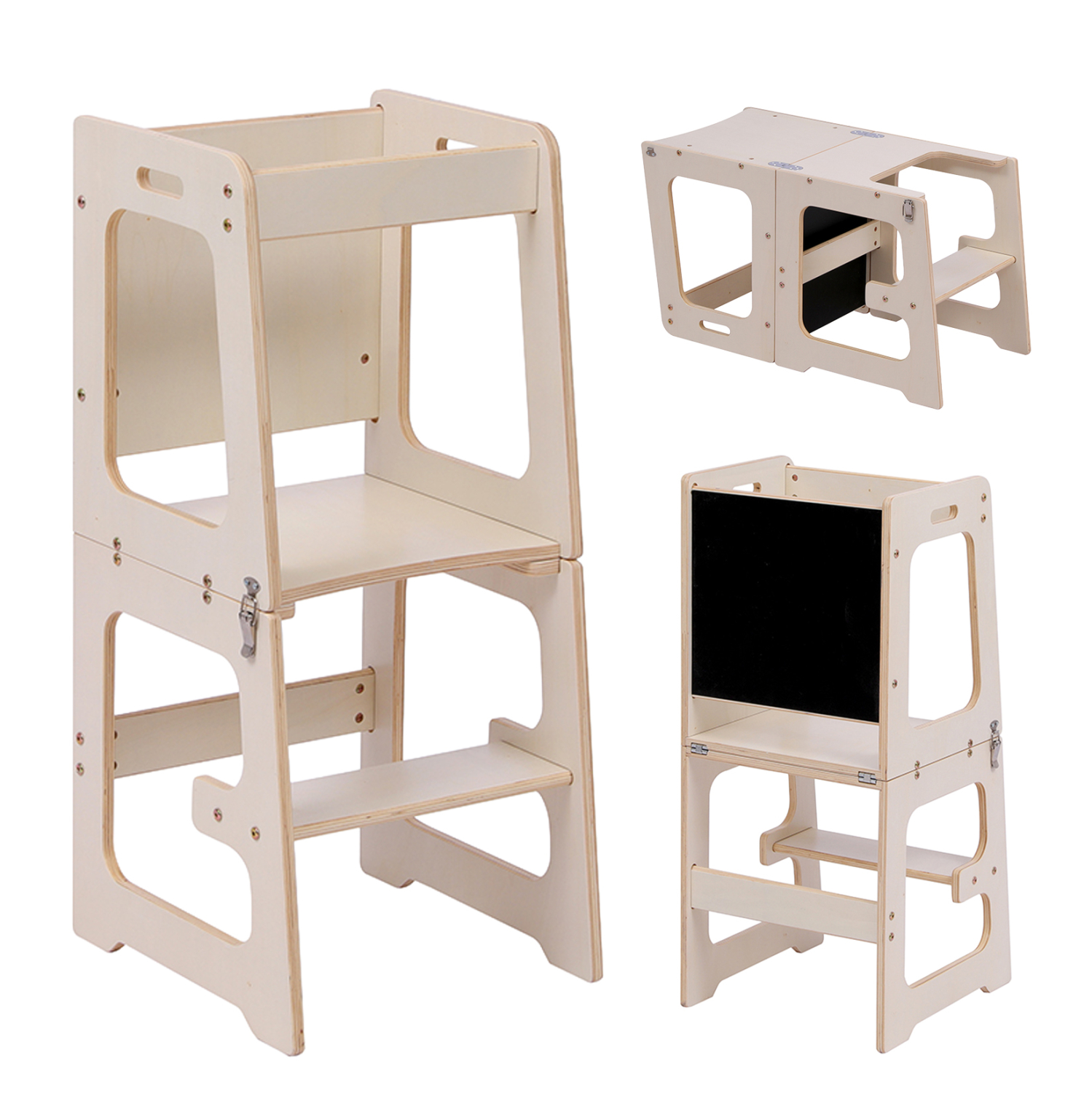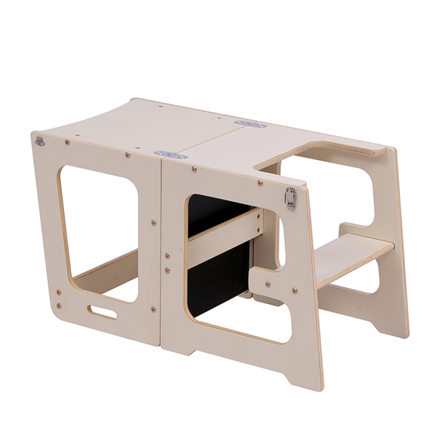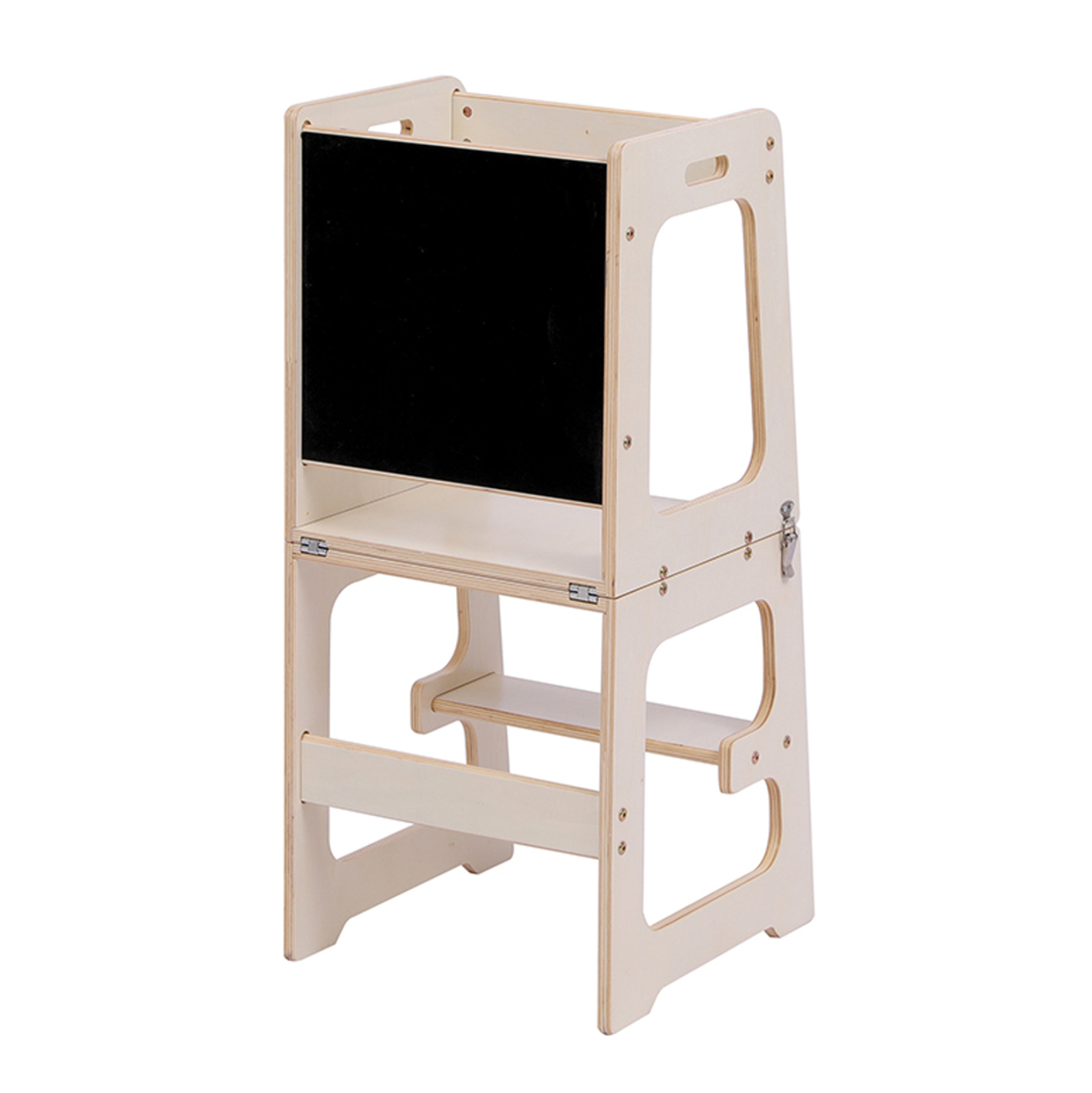 Η ενσωματωμένη επιφάνεια μαυροπίνακα μετατρέπει τον πύργο σε έναν μικρό δημιουργικό χώρο, ενισχύοντας τη φαντασία και τη μάθηση μέσα από το παιχνίδι.