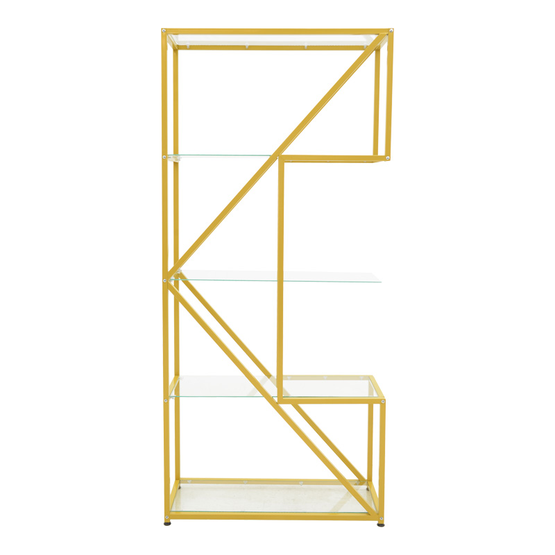 Ραφιέρα Aylan γυαλί – μέταλλο σε χρυσή απόχρωση 100x30x200εκ