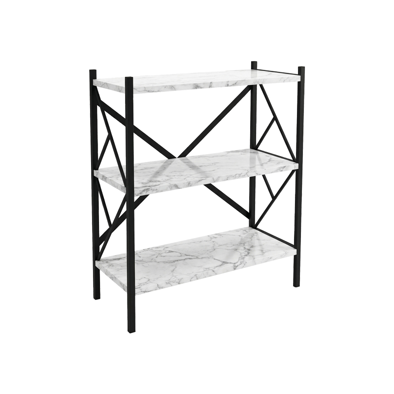 Ραφιέρα επιδαπέδια Althea λευκό μαρμάρου με μαύρο μέταλλο 60x30x90εκ