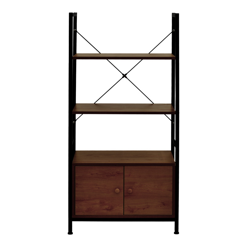 Ραφιέρα επιδαπέδια με ντουλάπι Kuili μέταλλο μαύρο-mdf σε καρυδί απόχρωση 60x36x121εκ