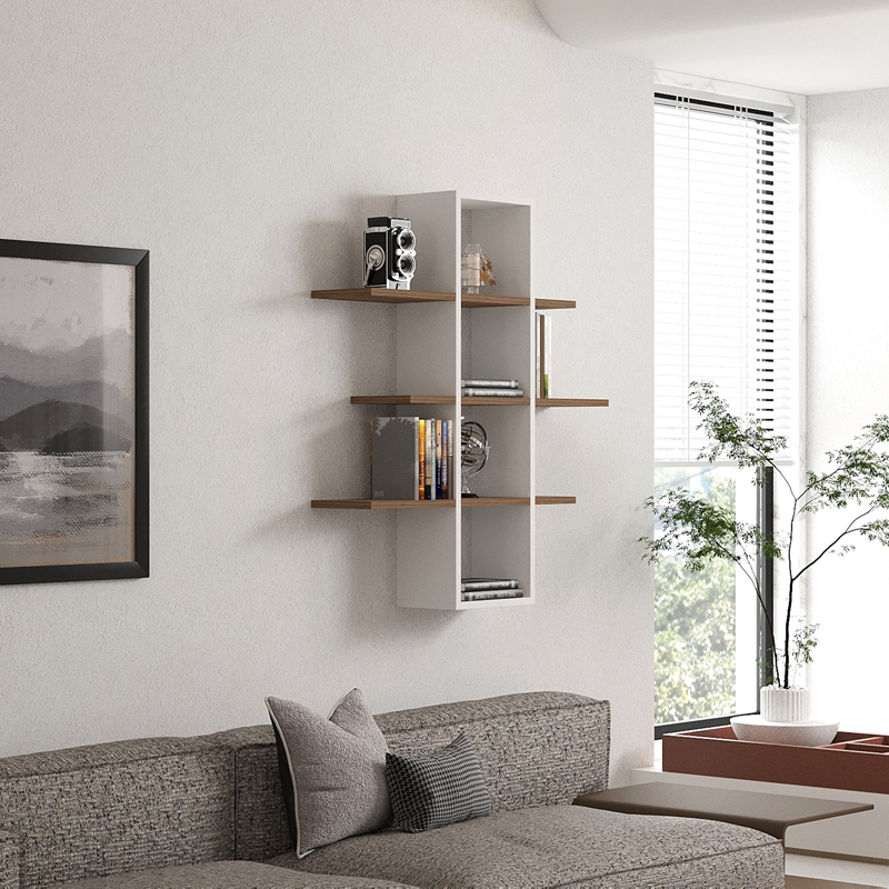 Ραφιέρα τοίχου Akira μελαμίνη σε καρυδί-λευκή απόχρωση 96×19.5×101εκ