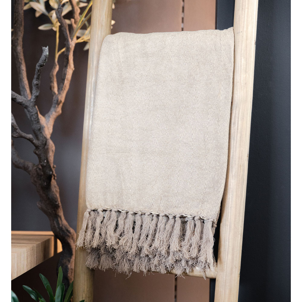Το ριχτάρι διακοσμητικό RASUL σε ανοιχτό μπεζ τονίζει φωτεινότητα και καθαρότητα στο καθιστικό. Το ύφασμα του πέφτει όμορφα πάνω στον καναπέ ή την πολυθρόνα, δίνοντας ανανεωμένη όψη. Ταιριάζει με minimal, boho ή contemporary αισθητική. Η ανοιχτή απόχρωση προσθέτει αέρα φρεσκάδας. Ένα ριχτάρι που χαρίζει serene elegance.