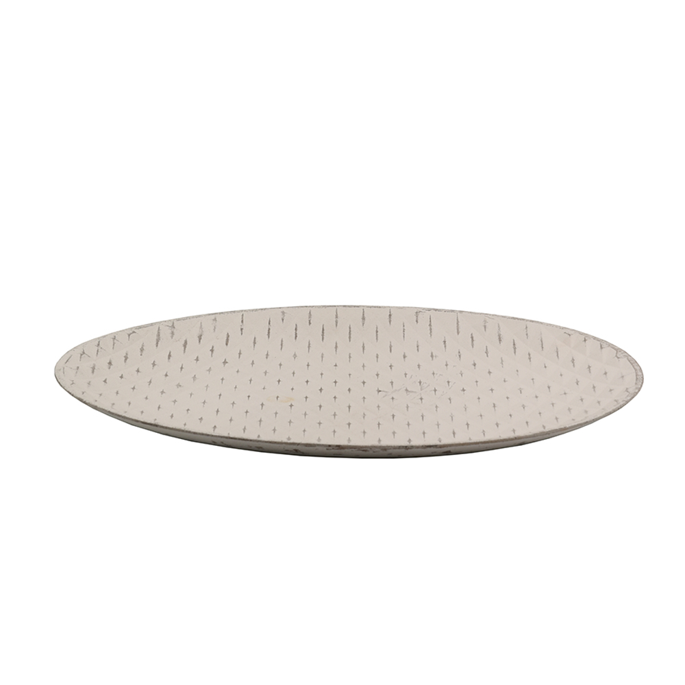 Ο διακοσμητικός δίσκος ROBOS από MDF σε λευκή απόχρωση με διακριτικό ανάγλυφο μοτίβο είναι μια μοντέρνα πρόταση για κάθε εσωτερικό χώρο. Με διαστάσεις 50x50cm και στρογγυλό σχήμα, προσφέρει λειτουργικότητα αλλά και αισθητική αξία. Ιδανικός για να παρουσιαστούν διακοσμητικά αντικείμενα, κεριά ή ακόμα και ως βάση για εποχιακές συνθέσεις. Η κομψή του εμφάνιση τον καθιστά κατάλληλο για βιτρίνες, ξενοδοχεία, concept stores ή μοντέρνα σπίτια.