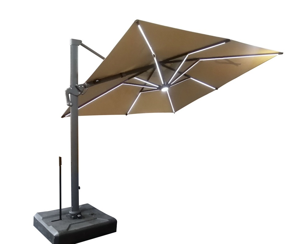 Roma/C Deluxe 3x3m, ομπρέλα γωνιακή αλουμινίου με σύστημα ανύψωσης, αεραγωγό και βάση HFDZ-005: