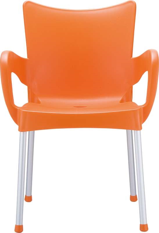 Πολυθρόνα ROMEO του οίκου Siesta σε πορτοκαλί χρώμα,κατασκευασμένη από πολυπροπυλένιο ενισχυμένο με 20% fiber glass και πόδια από ανοδειωμένο αλουμίνιο Φ25mm,για απόλυτη αντοχή στον χρόνο.Κατάλληλη για εσωτερική και εξωτερική χρήση,στοιβαζόμενη σε πολλά χρώματα,ιδανική για επαγγελματική χρήση.