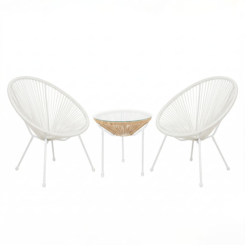 Σαλόνι Εξωτερικού Χώρου Acapulco Σετ 3τεμ λευκό μέταλλο με pe rattan σε φυσική απόχρωση Φ50×52εκ