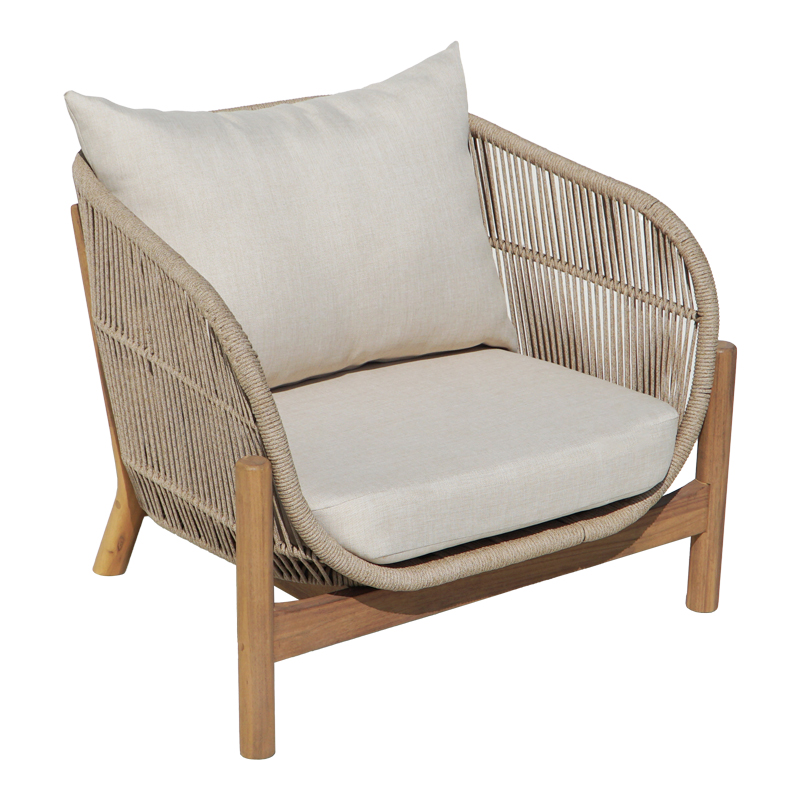 Σαλόνι εξωτερικού χώρου Verilan μασίφ ξύλο ακακίας με σχοινί και μπεζ μαξιλάρια