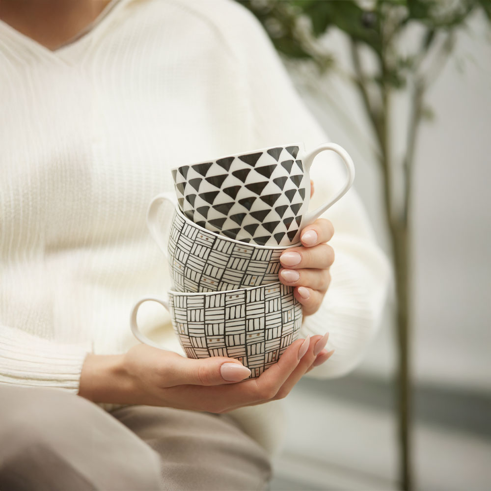 Η κούπα SERAX εντυπωσιάζει με το καλοσχεδιασμένο μοτίβο της πάνω στη λευκή πορσελάνη, στολισμένο με διακριτικές χρυσές πινελιές για μια refined αισθητική. Το μαύρο σχέδιο δημιουργεί ένταση και βάθος, ενώ η ποιοτική New Bone China προσδίδει ελαφρότητα και απαλή υφή. Ιδανική για να ολοκληρώσει ένα elegant coffee set ή να σταθεί ξεχωριστά ως κομμάτι design.