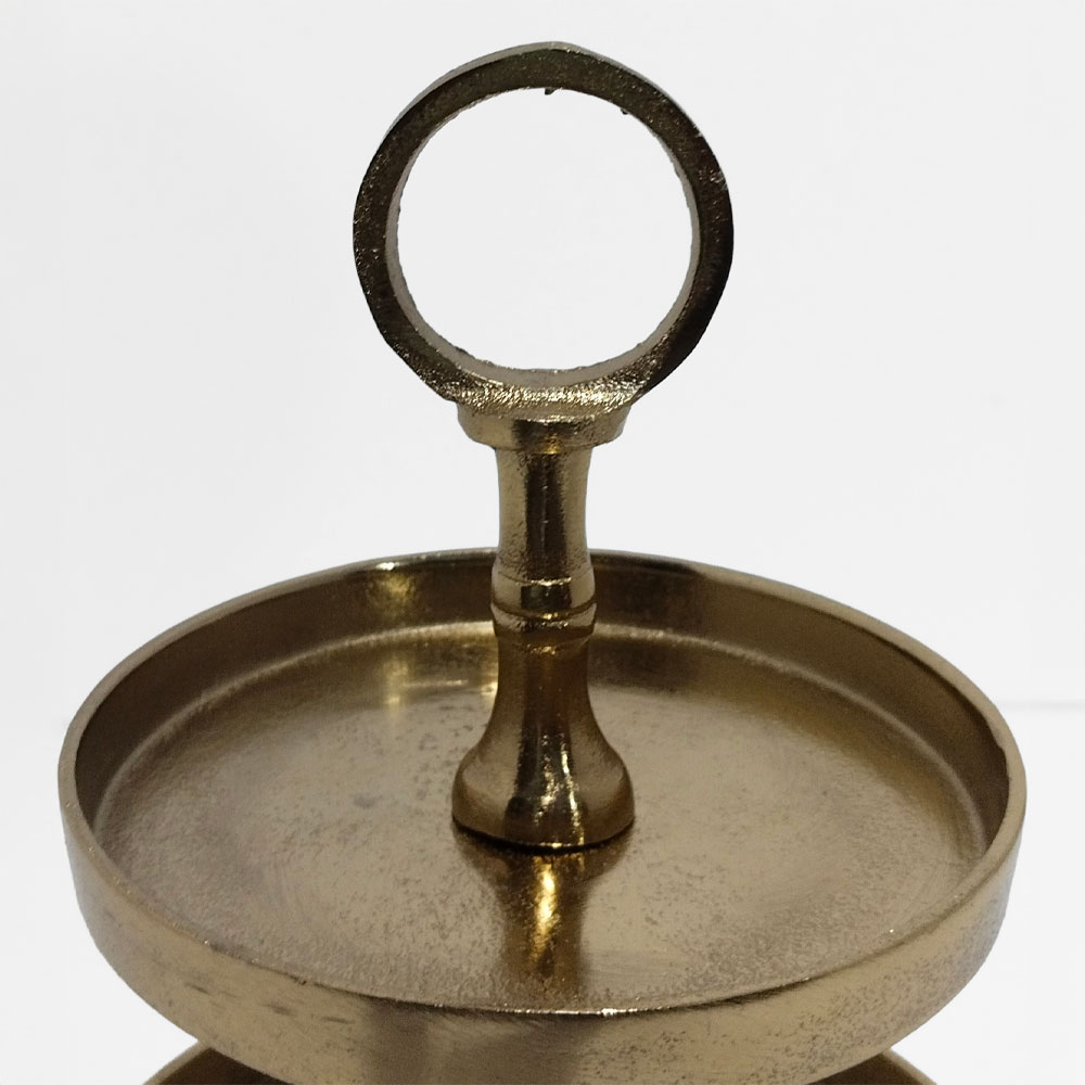 Η τριώροφη ορντεβιέρα SERVIR συνδυάζει διαχρονική αισθητική και λειτουργικό design. Η χρυσή απόχρωση αναδεικνύει το αντικείμενο, κάνοντάς το ιδανικό για παρουσιάσεις σε τραπέζια, brunch setup, buffet ή επαγγελματικούς χώρους εστίασης. Προσθέτει chic πινελιά τόσο στη χρήση όσο και ως διακοσμητικό στοιχείο όταν παραμένει άδειο. Το αλουμίνιο προσφέρει ανθεκτικότητα και premium φινίρισμα.
