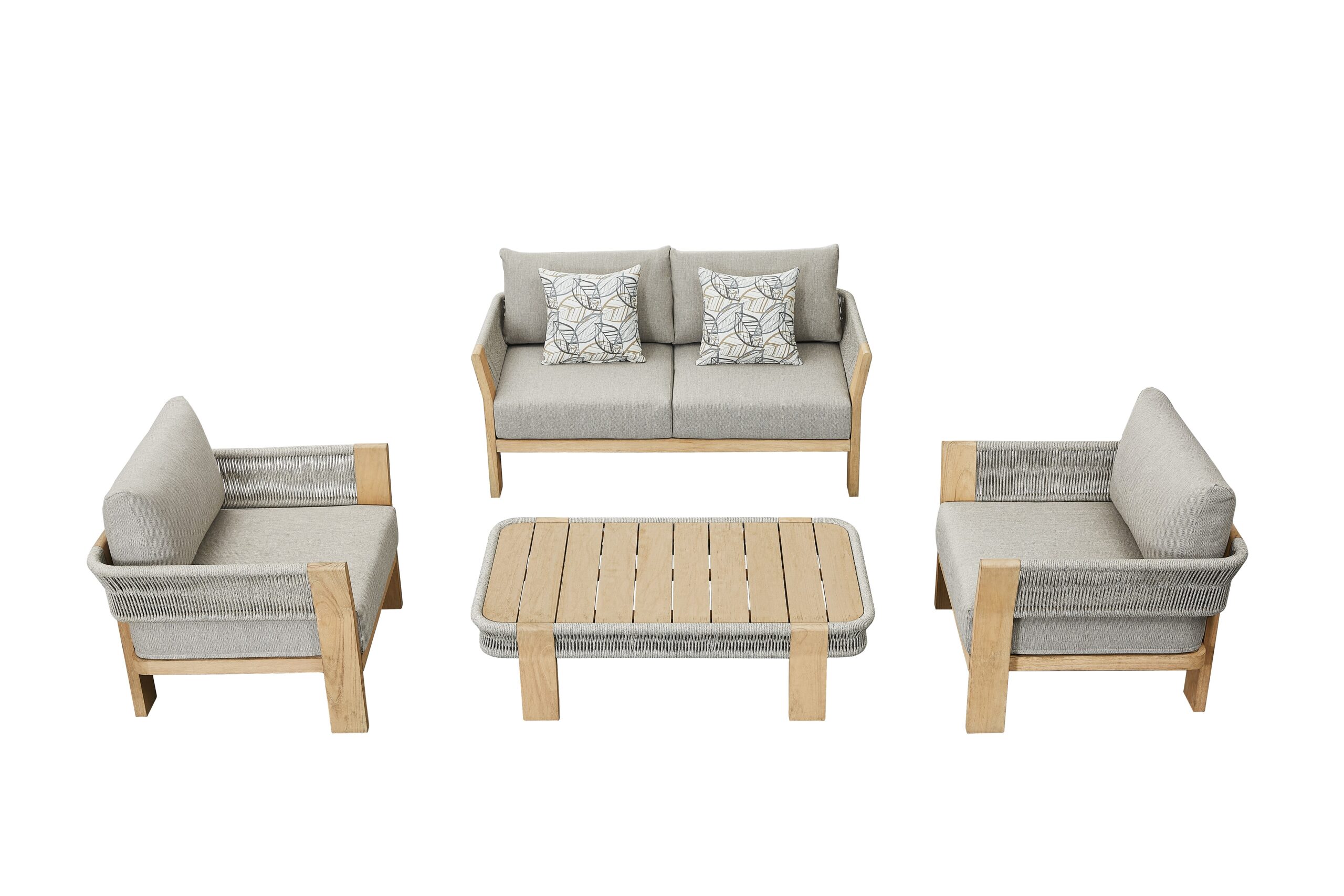 Το σετ Καθιστικού Borromeo Teak της συνδυάζει κομψότητα και διαχρονική αισθητική με σκελετό και βάση από Teak και αλουμίνιο μπεζ, πλέξη σχοινιού BHG-FA-8168 και τραπέζι από μασίφ ξύλο Teak. Τα πολυεστερικά μαξιλάρια HG-FA-4097, αδιάβροχα και πλενόμενα, προσφέρουν άνεση. Ιδανικό για εσωτερικούς και εξωτερικούς χώρους, συνδυάζει στυλ, ποιότητα και λειτουργικότητα.