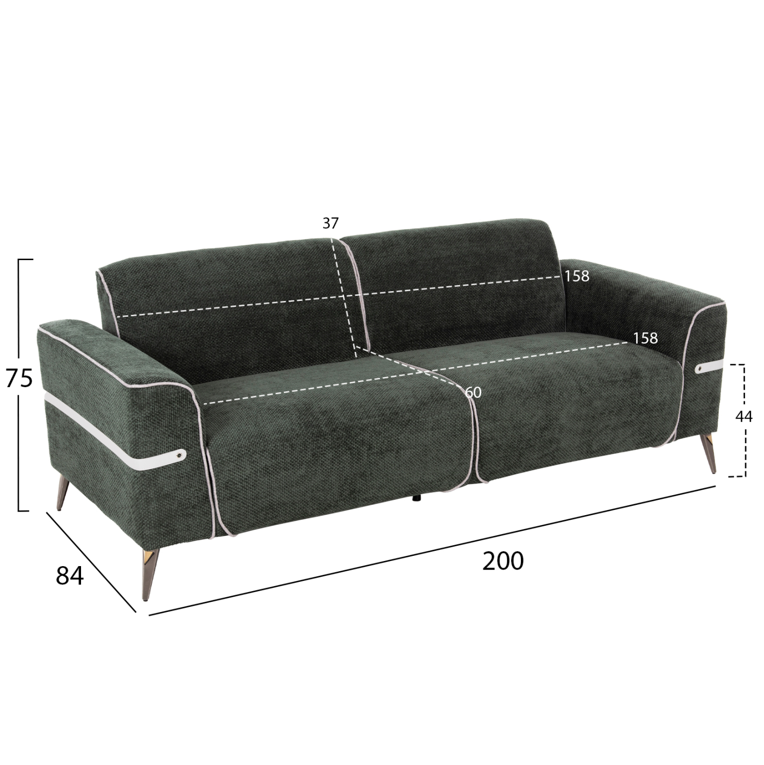 ΣΕΤ ΣΑΛΟΝΙ 2ΤΜΧ 3Θ+2Θ FERIN HM6070.03 ΠΡΑΣΙΝΟ ΥΦΑΣΜΑ ΜΕ ΜΕΤΑΛΛΙΚΑ ΠΟΔΙΑ