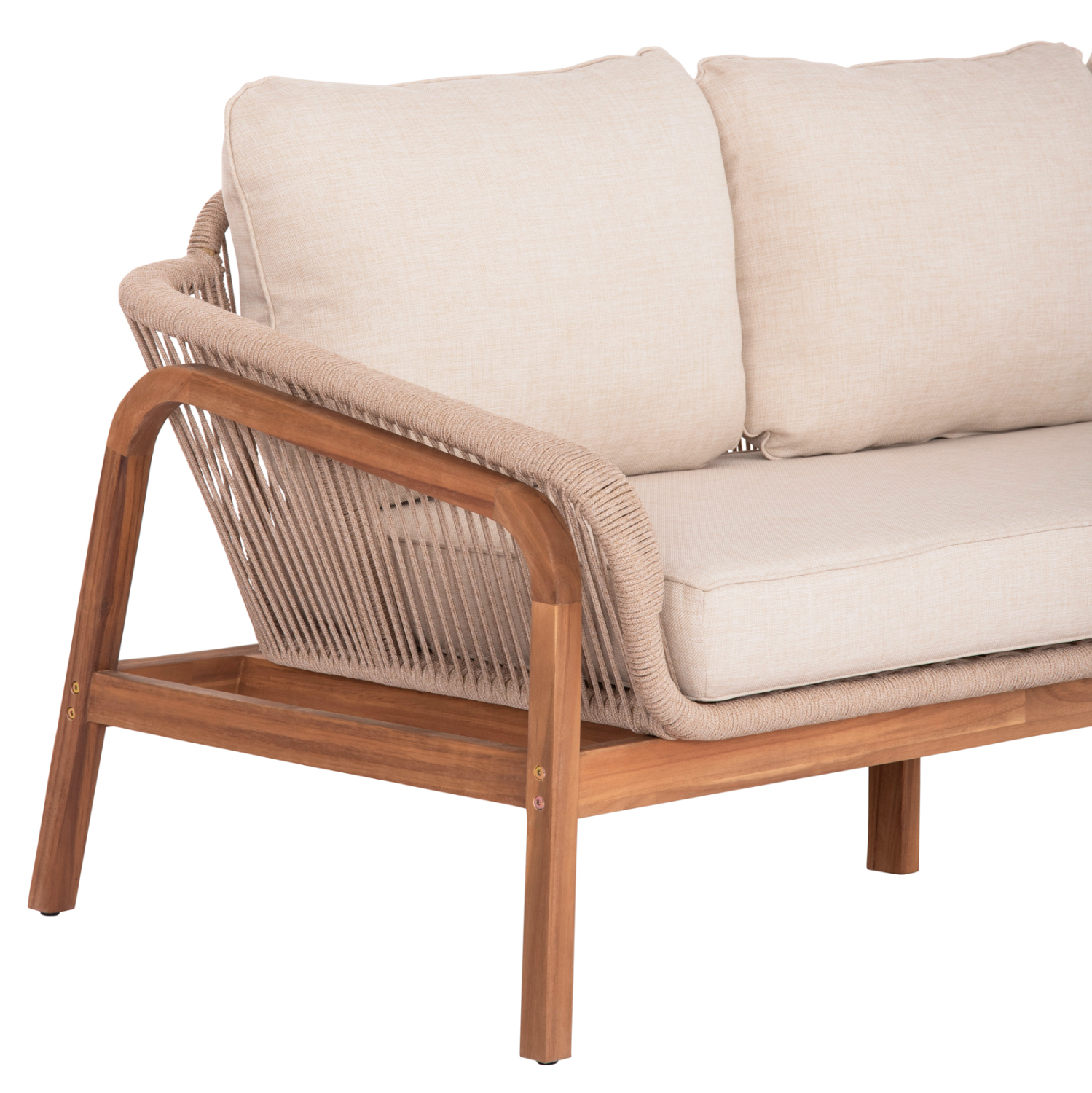 Το σετ σαλόνι 4τμχ εξωτερικού χώρου OASIS από την SYMETRON, ακολουθεί πιστά την φιλοσοφία της που προτάσσει την απαράμιλλη ποιότητα με την ανώτερη αισθητική. Αποτελείται από έναν διθέσιο καναπέ, 2 αναπαυτικές και πολυτελείς πολυθρόνες, και ένα τραπεζάκι. Ο σκελετός είναι από ξύλο ακακίας σε ΦΥΣΙΚΟ χρώμα ενώ τα πλαίσια των καθισμάτων είναι από αλουμίνιο με επένδυση σχοινιού σε ΜΠΕΖ χρώμα. Τα καλύμματα στα μαξιλάρια είναι και αυτά σε ΜΠΕΖ χρώμα ταιριάζοντας απόλυτα με το υπόλοιπο σύνολο. Η αισθητική και τα γήινα χρώματα κάθε σπιθαμής αυτού του σετ, θα μαγνητίσουν όλα τα βλέμματα.
