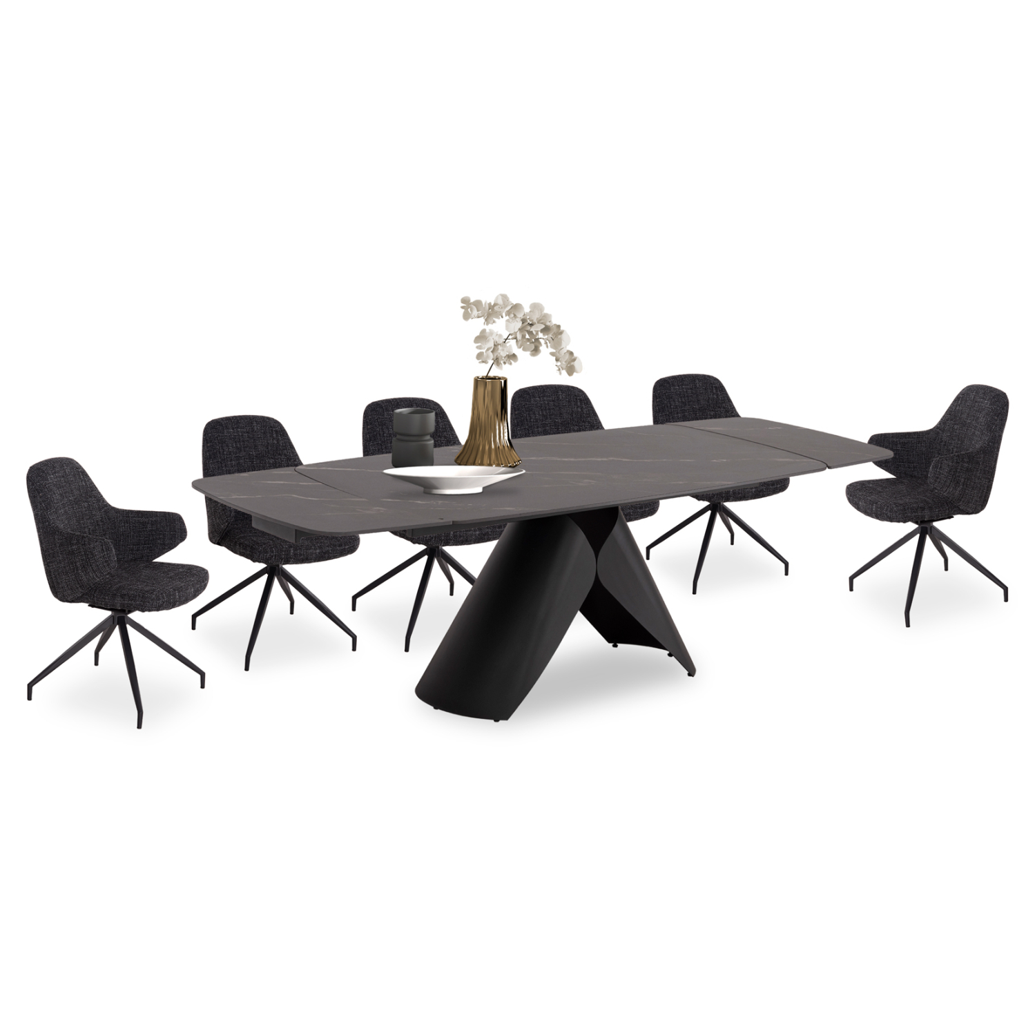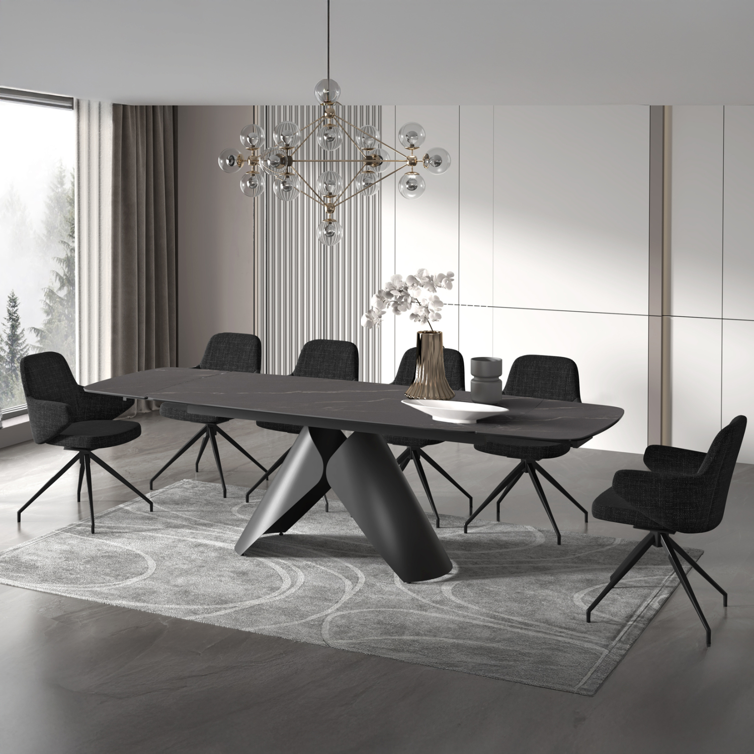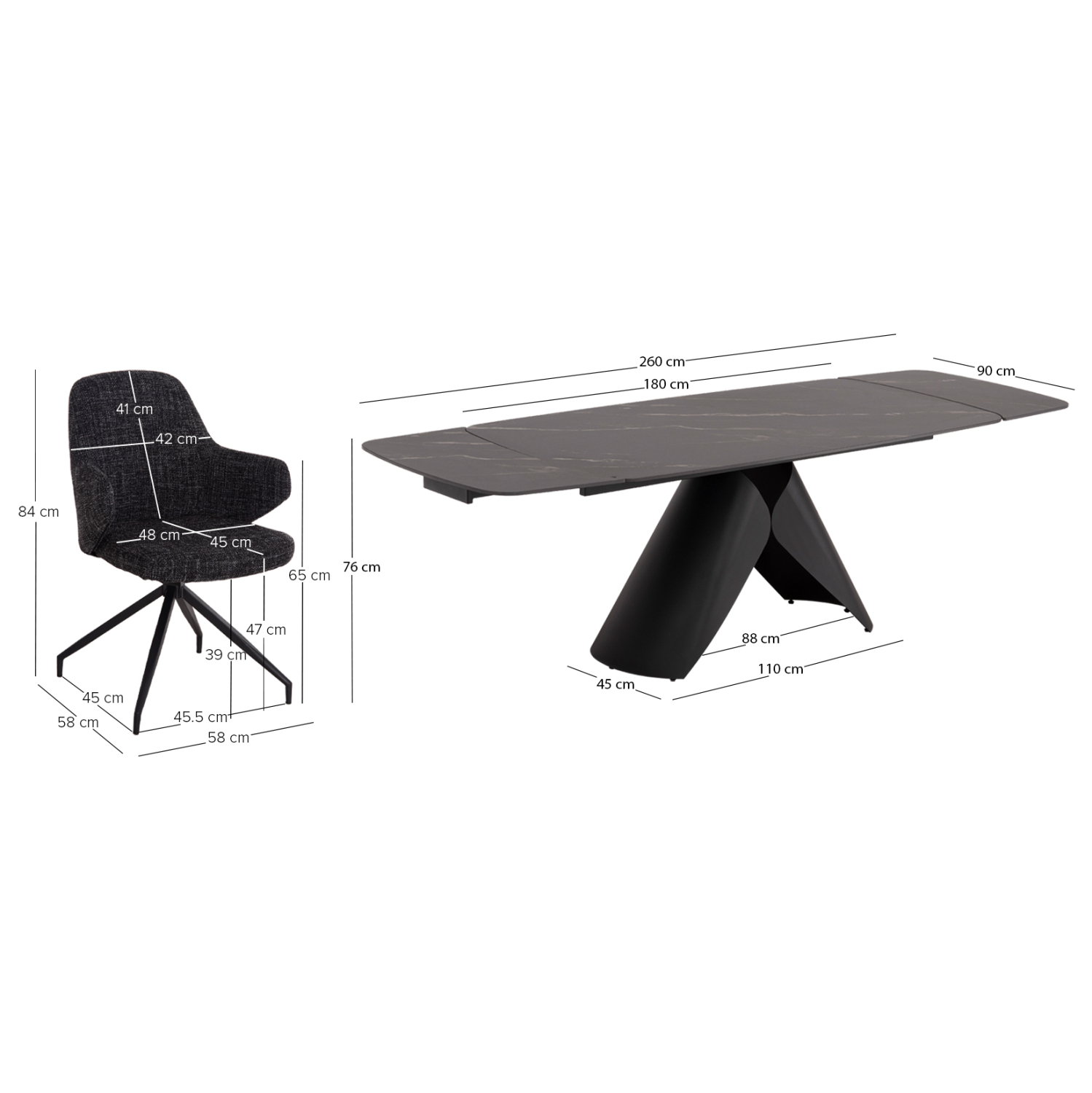 Η SYMETRON παρουσιάζει το νέο σετ τραπεζαρίας 6 θέσεων HYPERION! Με ασύγκριτη ποιότητα υλικών κατασκευής, αλλά και μοντέρνο design, το HYPERION θα τραβήξει τα βλέμματα, συνδυάζοντας υπέροχα την πρακτικότητα με την πολυτέλεια. Αποτελείται από ένα επεκτεινόμενο τραπέζι και 6 περιστρεφόμενα πολυθρονάκια τραπεζαρίας.