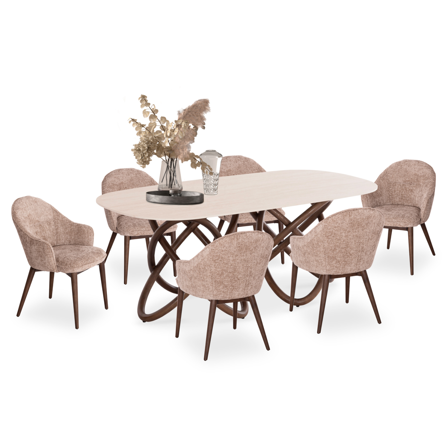 Η SYMETRON παρουσιάζει το νέο μεγάλο σετ τραπεζαρίας 6 θέσεων ORBITER(L)! Με ασύγκριτη ποιότητα υλικών κατασκευής, αλλά και μοναδικό design, το ORBITER(L) θα αποτελέσει το σημείο αναφοράς σε κάθε χώρο, συνδυάζοντας υπέροχα την πρακτικότητα με την πολυτέλεια. Αποτελείται από ένα οβάλ τραπέζι και 6 καρέκλες τραπεζαρίας.
