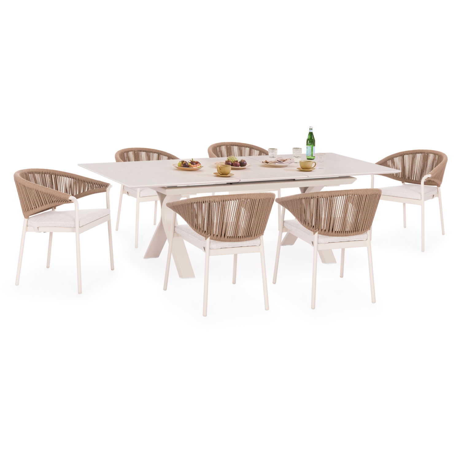 Η SYMETRON μεταμορφώνει τον εξωτερικό σας χώρο με ακόμα ένα νέο σετ τραπεζαρίας 6 θέσεων ANDROMEDA (S)! Με ποιότητα κατασκευής και υλικών, απαράμιλλη αισθητική αλλά και μοντέρνο design, το ANDROMEDA (S) συνδυάζει υπέροχα την πρακτικότητα με την πολυτέλεια. Αποτελείται από ένα επεκτεινόμενο τραπέζι και 6 στιλάτες πολυθρόνες τραπεζαρίας με επένδυση σχοινί.