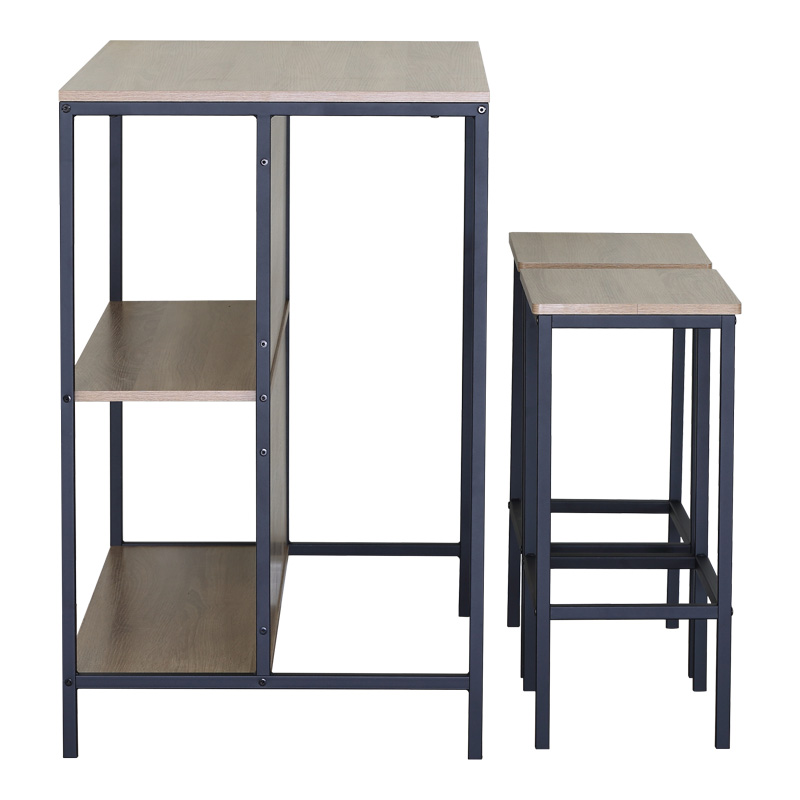 Σετ τραπέζι μπαρ Bailon με ράφια σε oak απόχρωση με μαύρο μέταλλο 100x60x95εκ