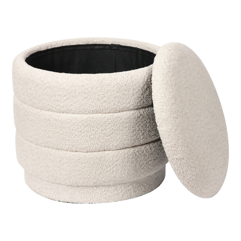 Σκαμπό-μπαούλο Bettia μπουκλέ ιβουάρ Φ41×38.5εκ