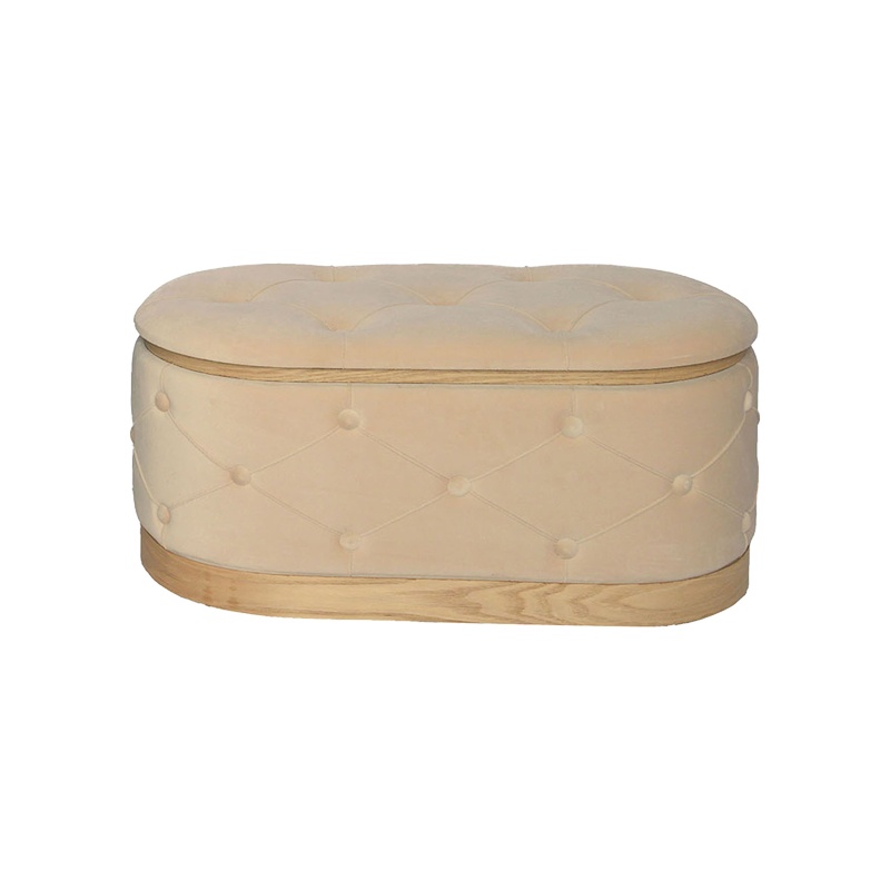 Σκαμπό μπαούλο Daph Inart σετ 2 τεμ βελούδο σε μπεζ και λευκή απόχρωση