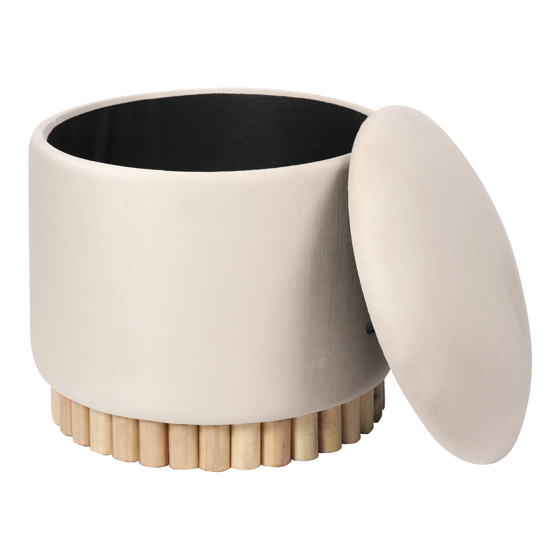 Σκαμπό-μπαούλο Terina βελούδο κρεμ Φ46×42εκ