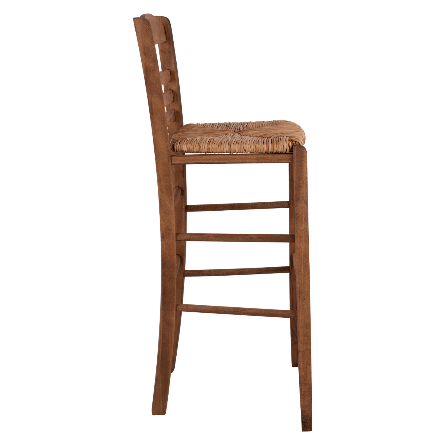 Σκαμπό καφενείου επιλοχία με ψάθα από μασίφ ξύλο φουρνιστής οξιάς εμποτισμού σε καρυδί απόχρωση.