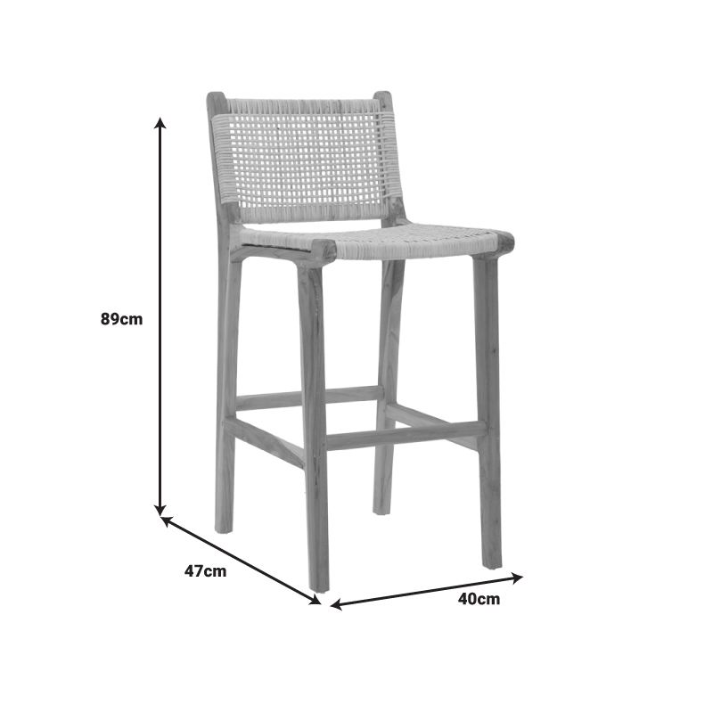Σκαμπό μπαρ μεσαίου ύψους Sponze teak ξύλο-φυσικό rattan σε φυσική απόχρωση 40x47x89εκ