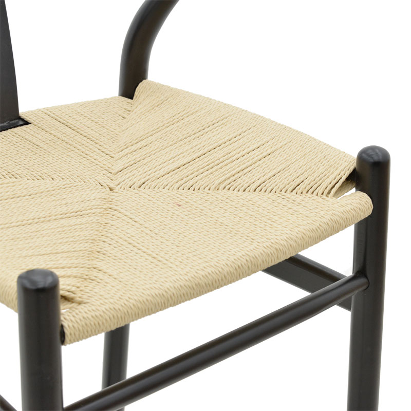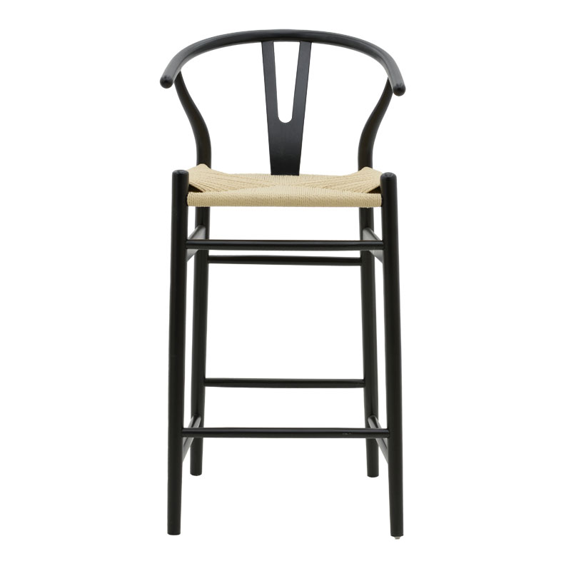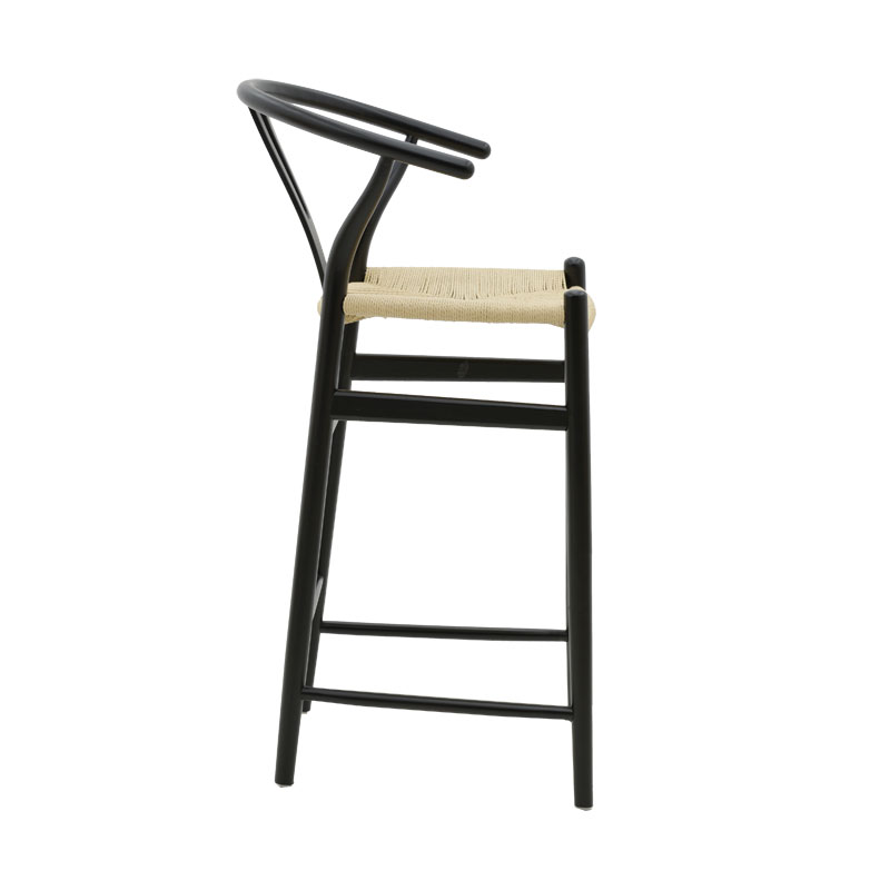 Σκαμπό μπαρ Wishbone ξύλο οξιάς μαύρο-έδρα φυσικό σχοινί 53x54x107εκ