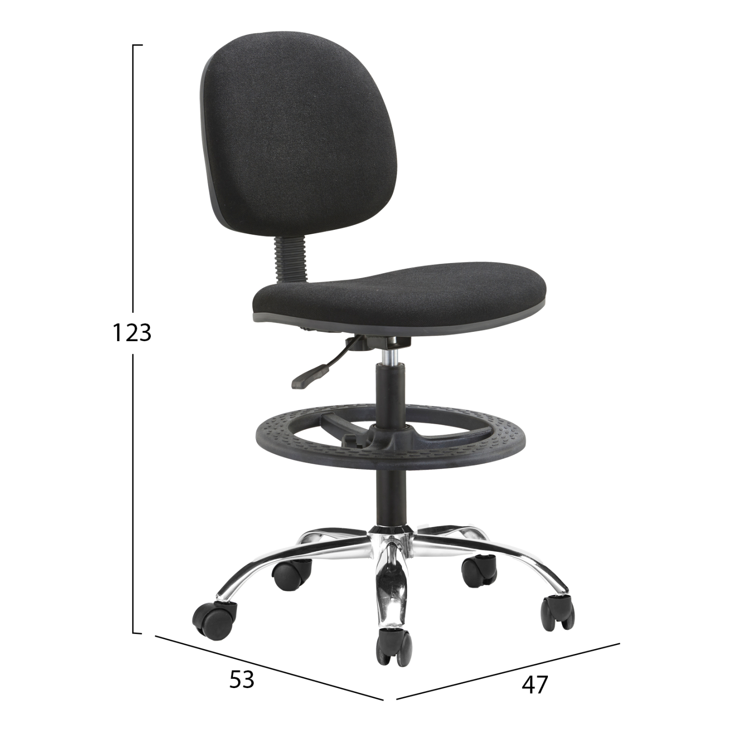 Η υπερυψωμένη καρέκλα εργασίας (σκαμπό) DROMEN είναι η ιδανική λύση για επαγγελματικούς χώρους που απαιτούν εργασία σε ψηλούς πάγκους, σχεδιαστήρια ή reception, προσφέροντας την απαραίτητη στήριξη χωρίς να θυσιάζει την ελευθερία κινήσεων.