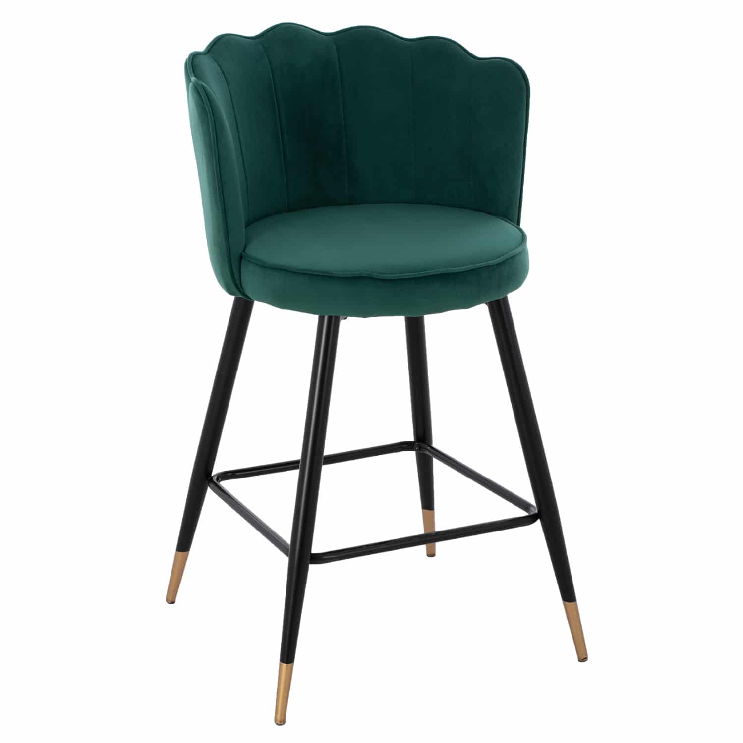 Σκαμπό μεσαίου ύψους από βελούδινο ύφασμα σε κυπαρισσί και μαύρο σκελετό με χρυσές λεπτομέρειες 50x50x90 εκ.