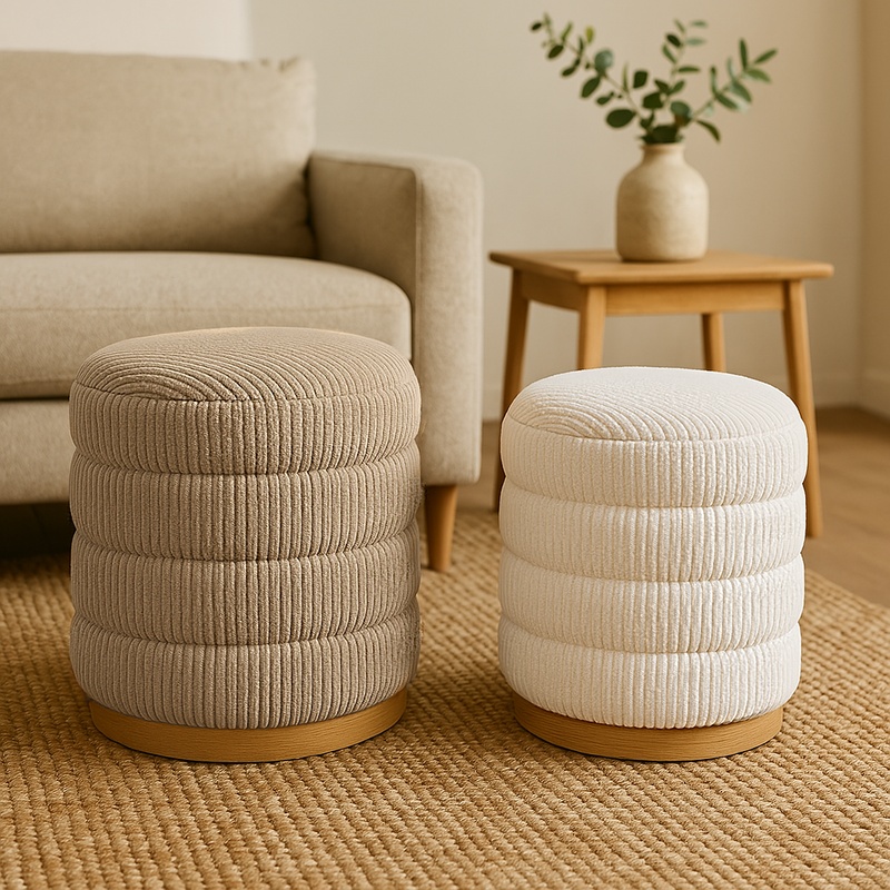 Σκαμπό Pance Inart σετ 2 τεμ μπουκλέ ύφασμα σε μπεζ και λευκή απόχρωση