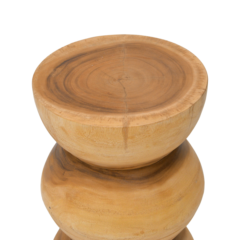 Προσθέστε έναν ιδιαίτερο και φυσικό τόνο στον χώρο σας με αυτό το κυλινδρικό σκαμπό Pilar. Κατασκευασμένο από μασίφ ξύλο suar, διατηρεί τις φυσικές αποχρώσεις του υλικού, προσφέροντας μια ζεστή και φιλόξενη ατμόσφαιρα.