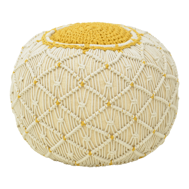 Σκαμπό-πουφ Boha Inart γιούτα σε κίτρινη και λευκή απόχρωση Φ40×30εκ