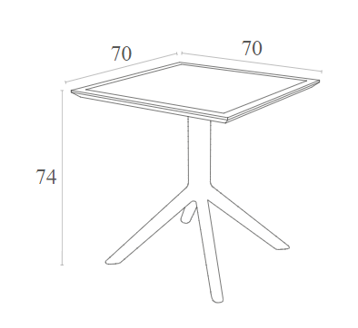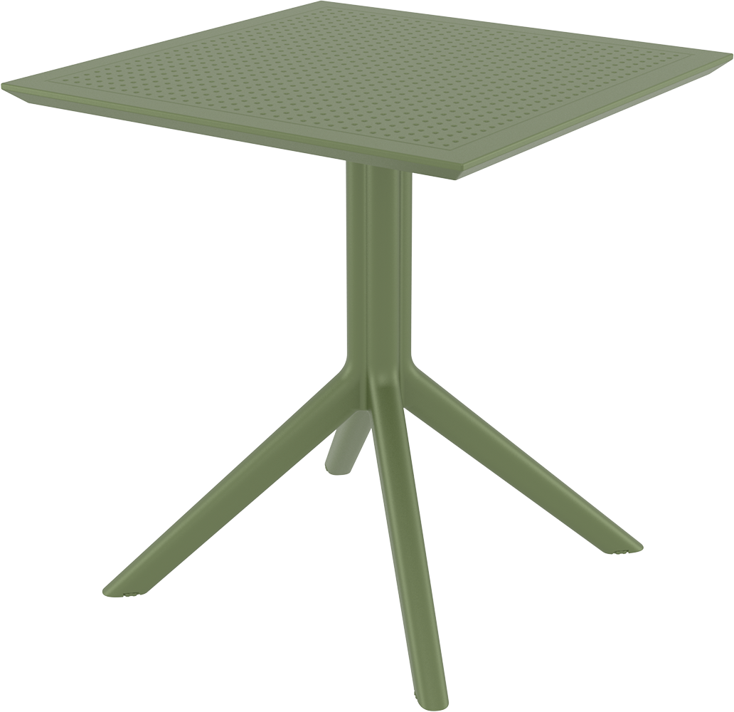 SKY τραπέζι 70Χ70 του οίκου Siesta σε χρώμα olive green.Κατασκευασμένο από πολυπροπυλένιο.Διαθέτει UV protection για μη αλλοίωση των χρωμάτων.Κατάλληλο για εσωτερική και εξωτερική χρήση.