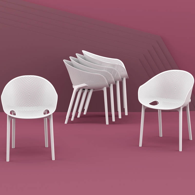 Πολυθρόνα SKY PRO του οίκου Siesta σε χρώμα white.Κατασκευασμένη από πολυπροπυλένιο ενισχυμένο με 20% fiber glass για απόλυτη αντοχή στο χρόνο.Είναι στοιβαζόμενη για εύκολη αποθήκευση.Κατάλληλη για εξωτερική και εσωτερική χρήση.Πιστοποιημένο προϊόν από τον Ιταλικό οίκο CATAS.