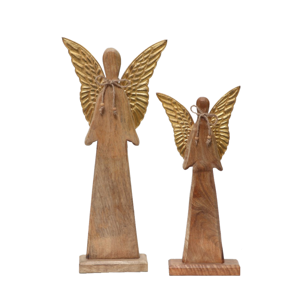 SLEET ΧΡΙΣΤΟΥΓΕΝΝΙΑΤΙΚΟ ΔΙΑΚΟΣΜΗΤΙΚΟ ΑΓΓΕΛΟΣ 19x6x44cm ΞΥΛΟ MANGO ΦΥΣΙΚΟ ΧΡΥΣΟ ΑΛΟΥΜΙΝΙΟ