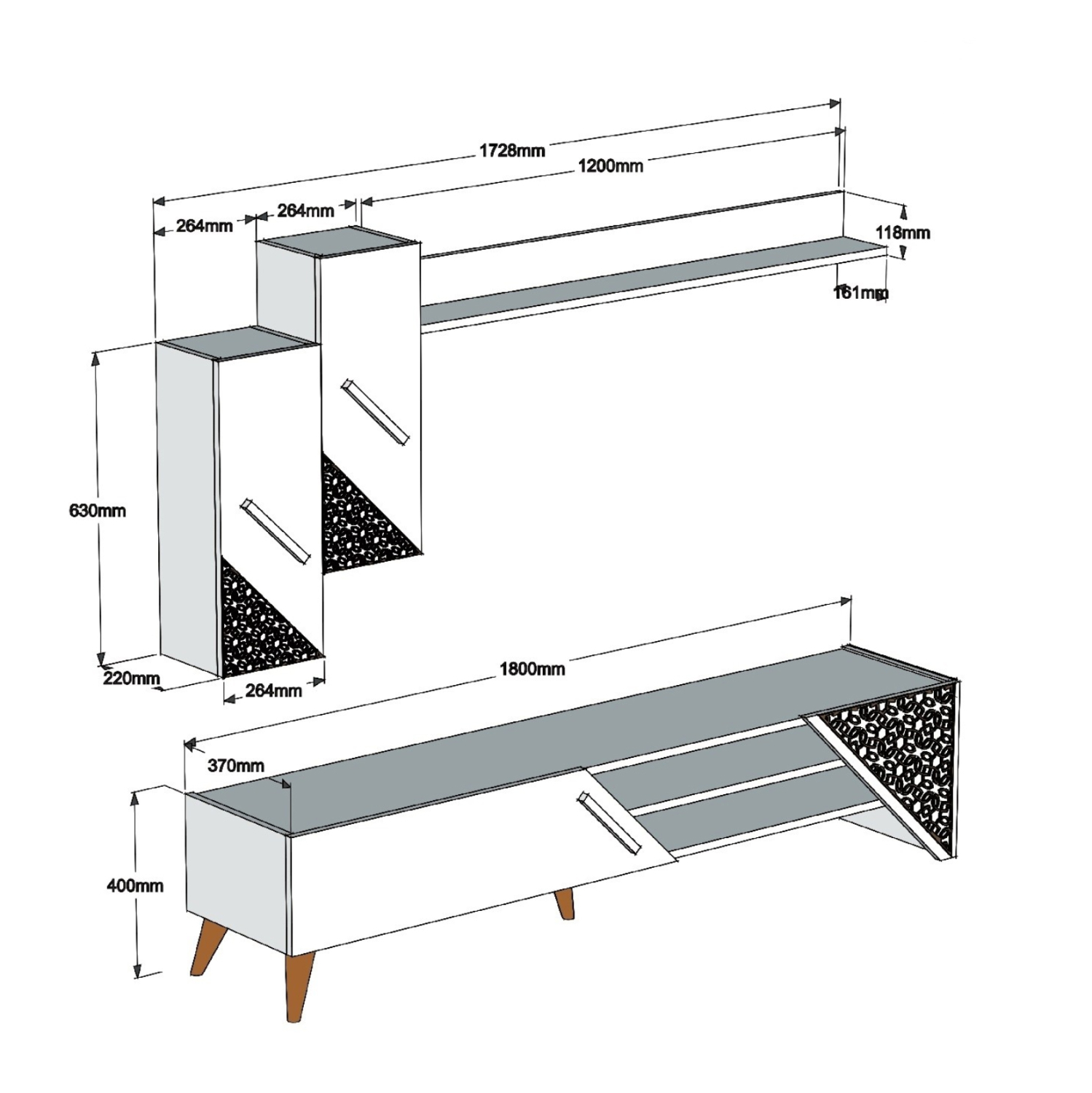 Το ΗΜ9514.01 είναι μια μοντέρνα και λειτουργική σύνθεση τηλεόρασης, που θα ομορφύνει το σαλόνι σας! Αποτελείται από το κυρίως έπιπλο δαπέδου το οποίο στην μία πλευρά του διαθέτει ανοιχτό χώρο τοποθέτησης αντικειμένων με ράφι και είναι διακοσμημένο με μηχανικά κατασκευασμένα σχέδια (CNC Relief), και στην άλλη διαθέτει ντουλάπι με μακρόστενο χερούλι. Η σύνθεση ολοκληρώνεται με 2 ντουλάπια τοίχου ίδιας αισθητικής και ένα μακρύ ράφι τοίχου. Πρόκειται για μια κομψή και ταυτόχρονα εντυπωσιακή πρόταση για το σαλόνι σας με κυρίαρχο χρώμα το ΦΥΣΙΚΟ ΟΑΚ!