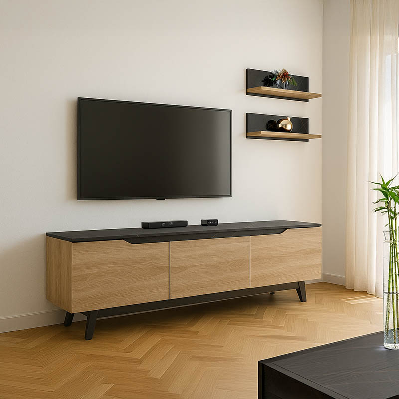 Σύνθετο σαλονιού Kasia σε μαύρο μαρμάρου-sonoma απόχρωση 180x35x48.5εκ