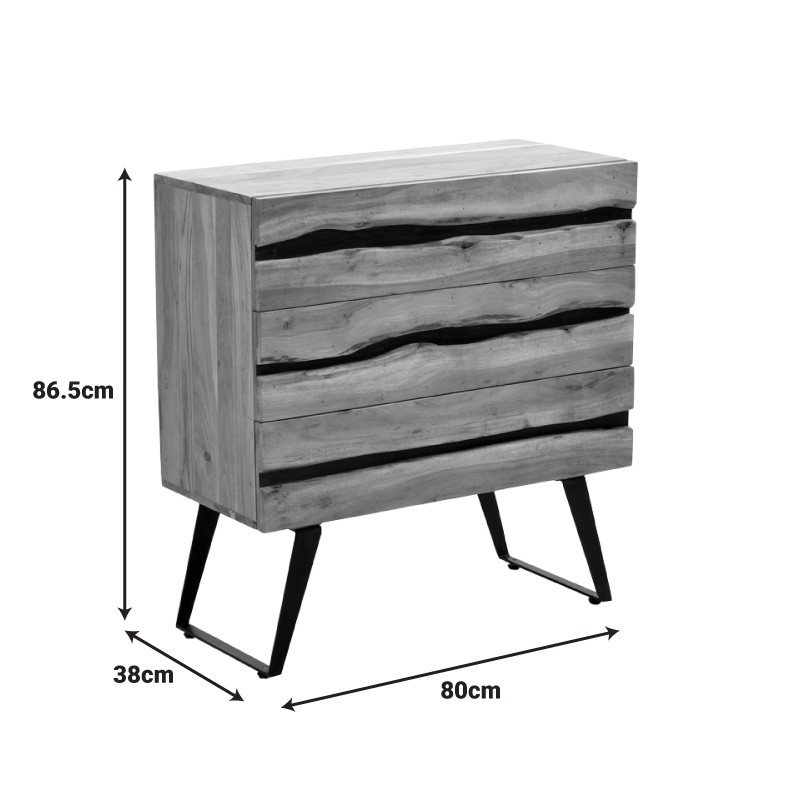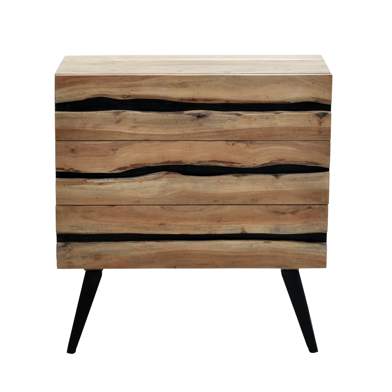 Συρταριέρα Imena μασίφ ξύλο Acacia σε φυσικό απόχρωση με μαύρα μεταλλικά πόδια 80x38x86,5εκ
