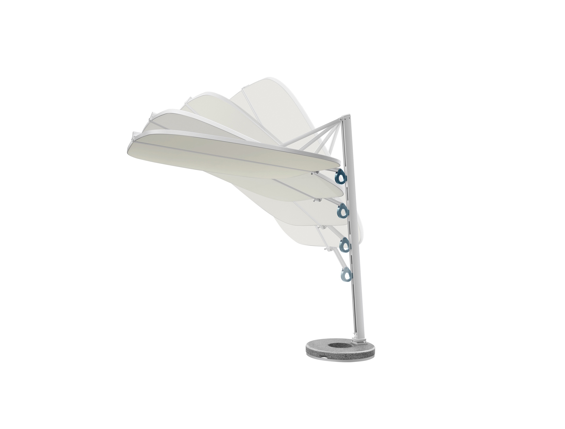 Ο καινοτόμος σχεδιασμός δύο τεμαχίων επιτρέπει την ανεξάρτητη ρύθμιση των γωνιών ανοίγματος. Όταν ρυθμίζεται ή συμπτύσσεται, μπορεί επίσης να λειτουργήσει ως οθόνη. Όταν ανοίγει πλήρως, εκτείνεται σε 2,05 μέτρα, παρέχοντας άφθονη σκιά για μεγάλους εξωτερικούς χώρους αναψυχής.