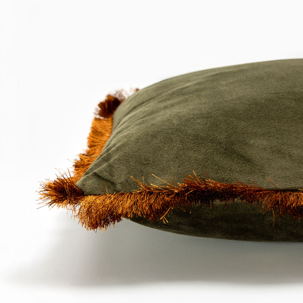 Το διακοσμητικό μαξιλάρι TERRICIO, στη λαδί εκδοχή του, φέρνει μια earthy chic αισθητική. Ο συνδυασμός λαδί και χρυσού δημιουργεί ένα ισορροπημένο αποτέλεσμα που ταιριάζει άψογα σε modern-classic χώρους, boho σαλόνια και φυσικές παλέτες. Το βελούδινο ύφασμα προσθέτει διακριτική πολυτέλεια και βάθος.
